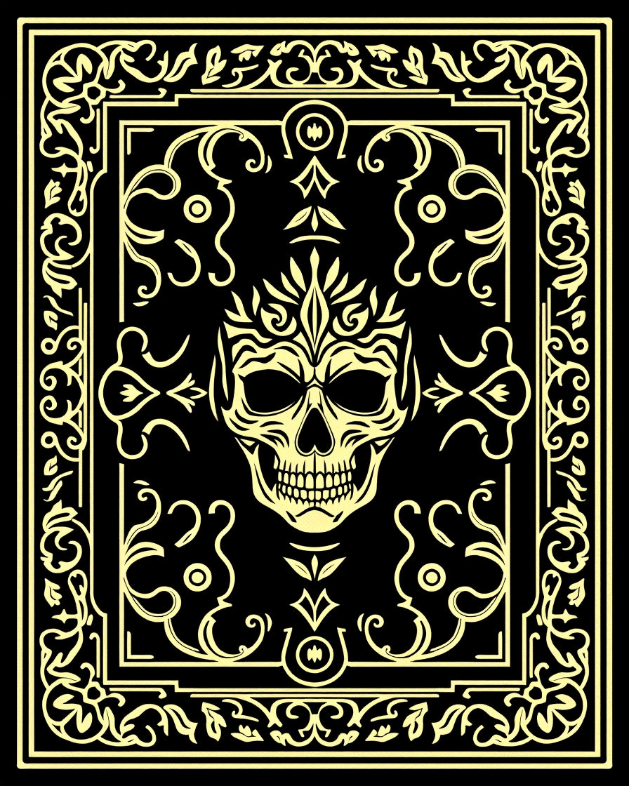 Damask Floral Scroll with Elegant Victorian Ornaments (Black)