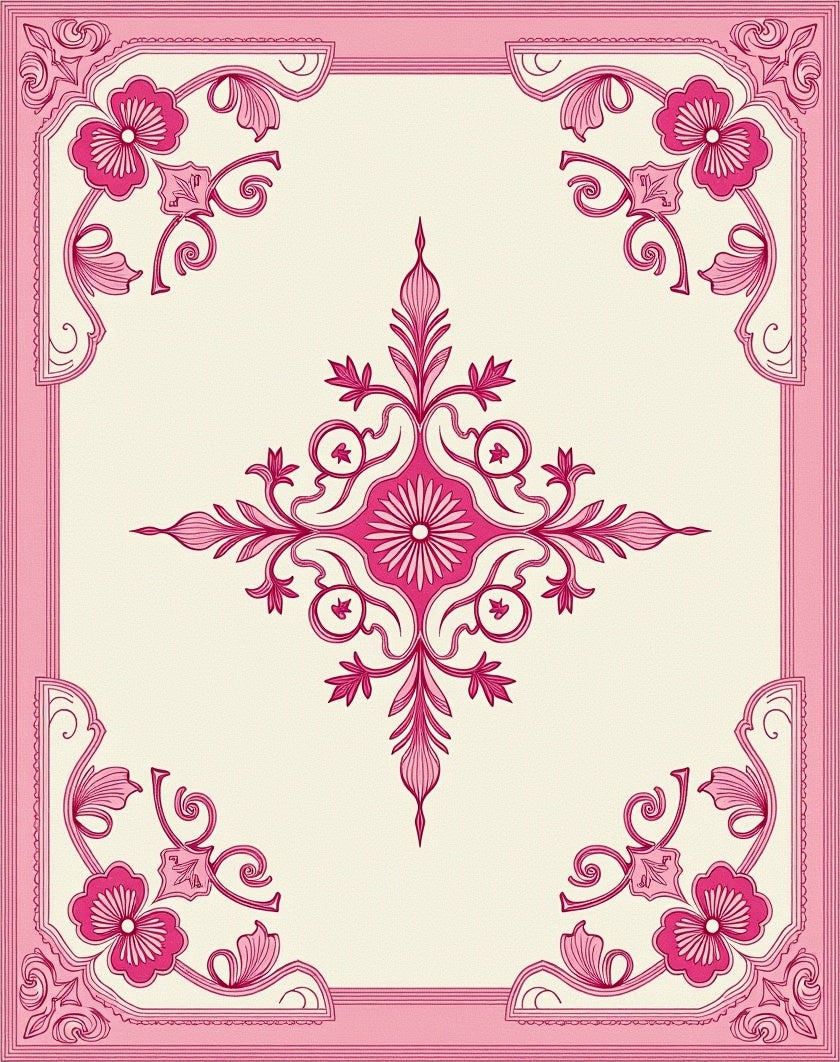 Damask Motif with Romantic Rose Garden Accents (Pink)