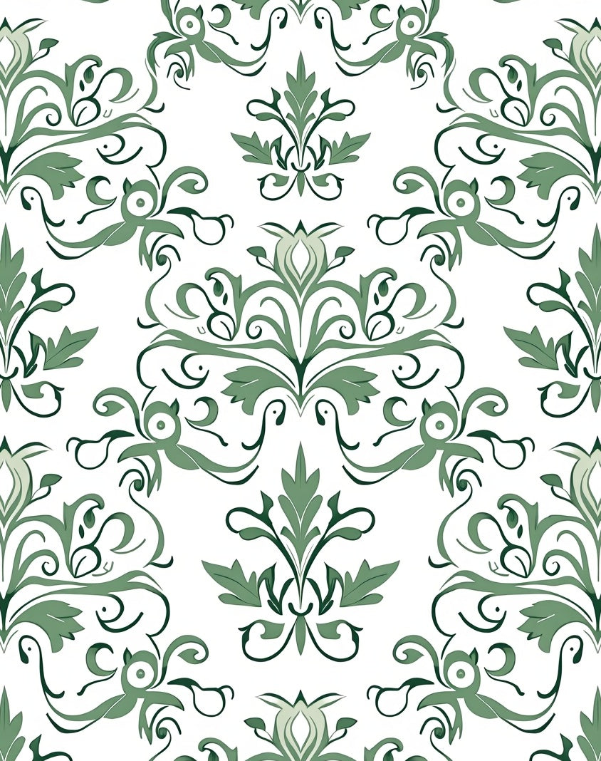 Damask Scrollwork with Elegant Baroque Flourishes (White)