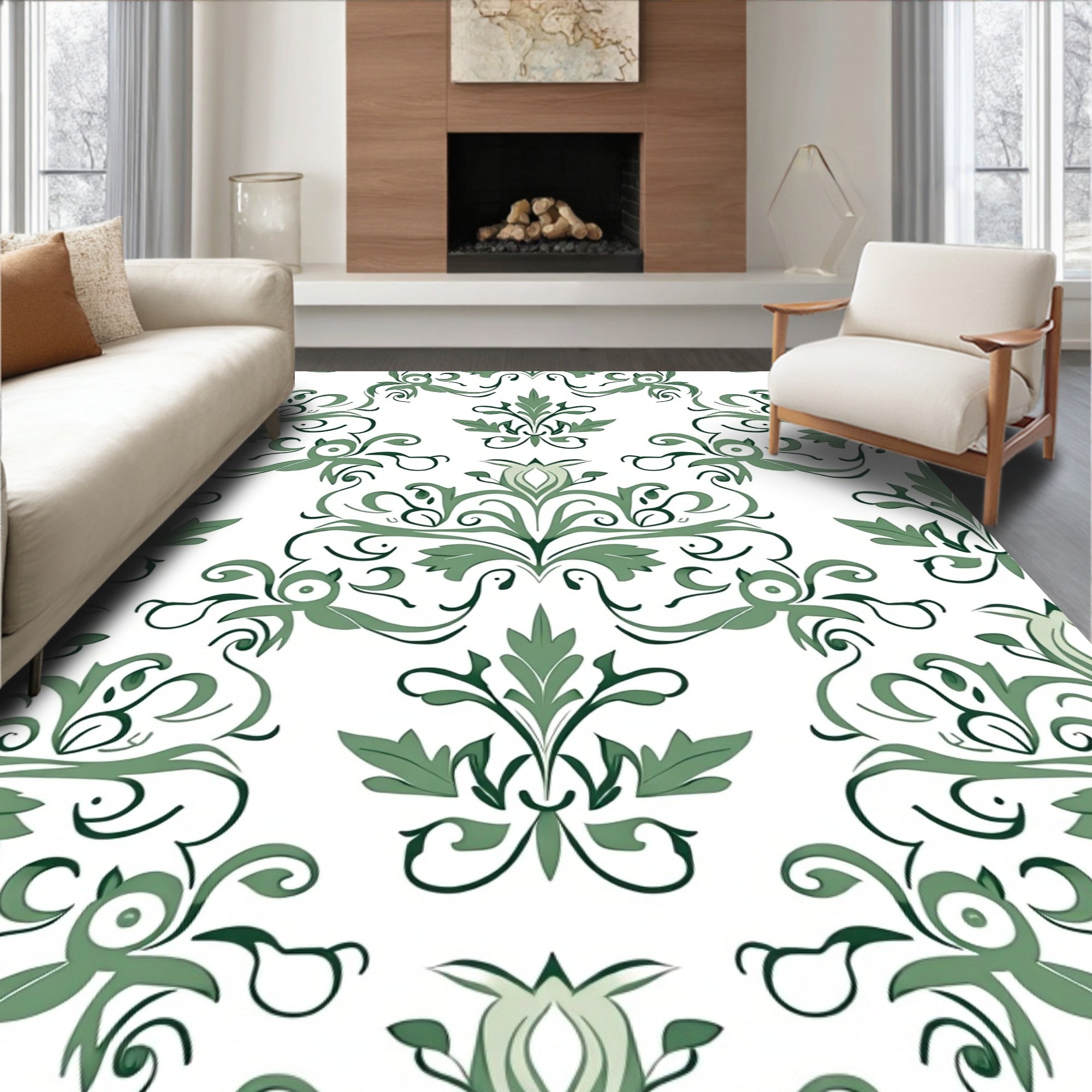Flatwoven High Traffic Area Rug, Damask Scrollwork with Elegant Baroque Flourishes, Non Slip, Stain Resistant, Washable Area Rugs for Living Room, Bedroom (White) Overview: