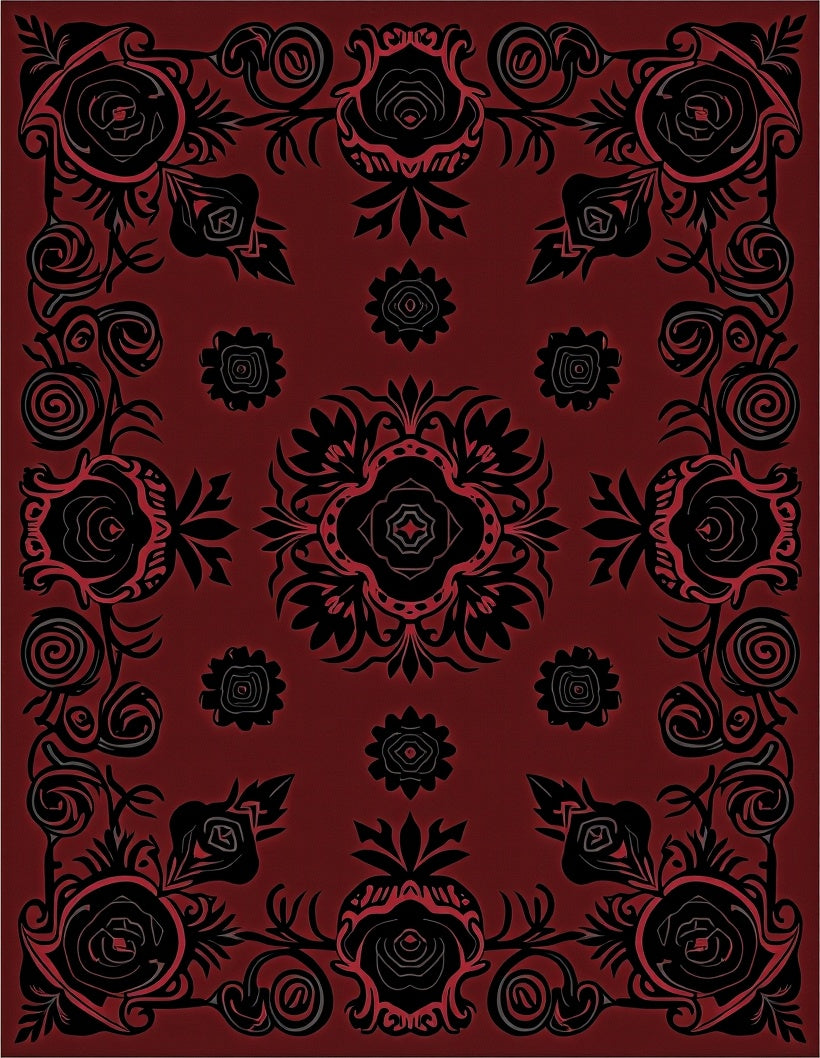 Dark Floral Skull Motif with Gothic Botanical Design (Red)