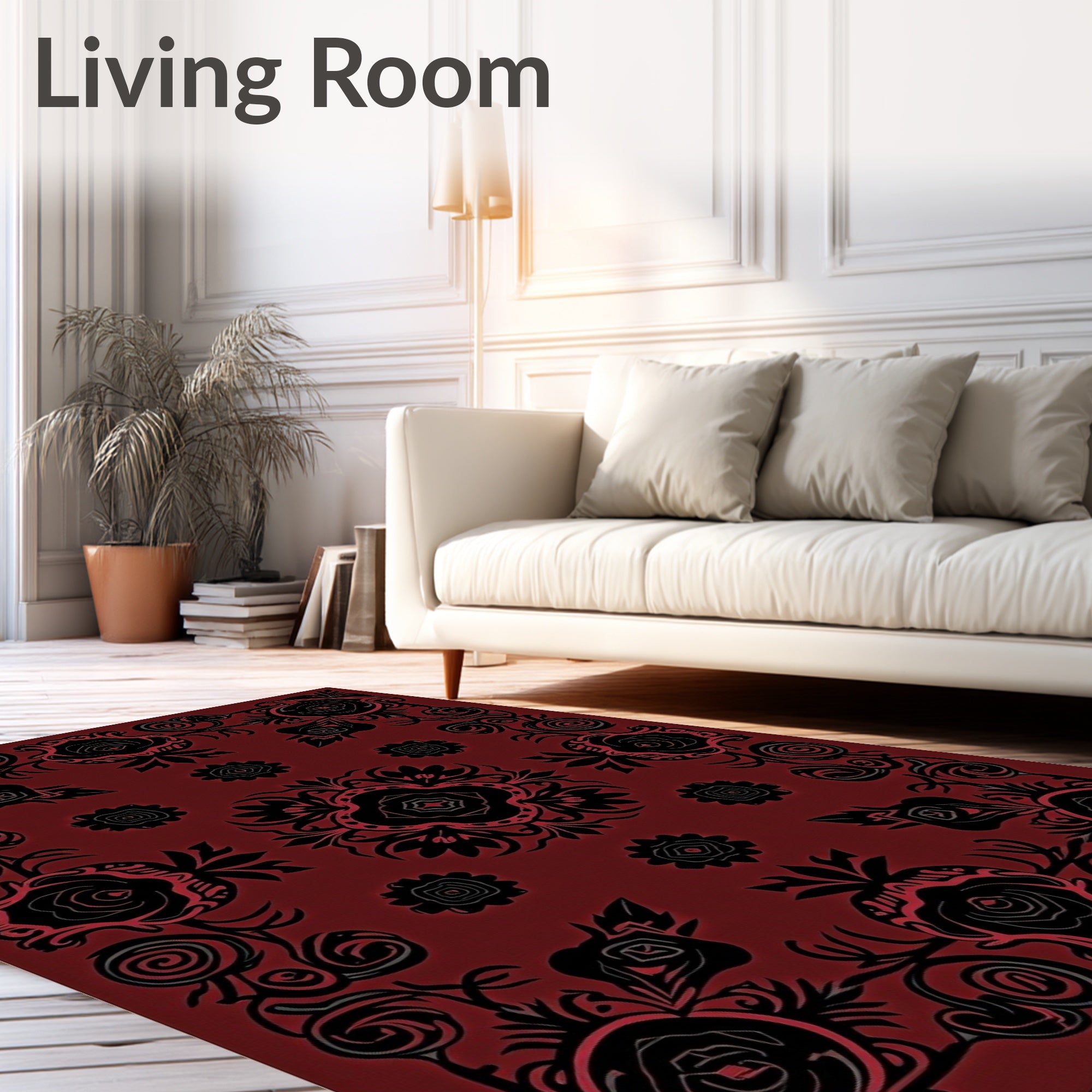Flatwoven High Traffic Area Rug, Dark Floral Skull Motif with Gothic Botanical Design, Non Slip, Stain Resistant, Washable Area Rugs for Living Room, Bedroom (Red) Overview: