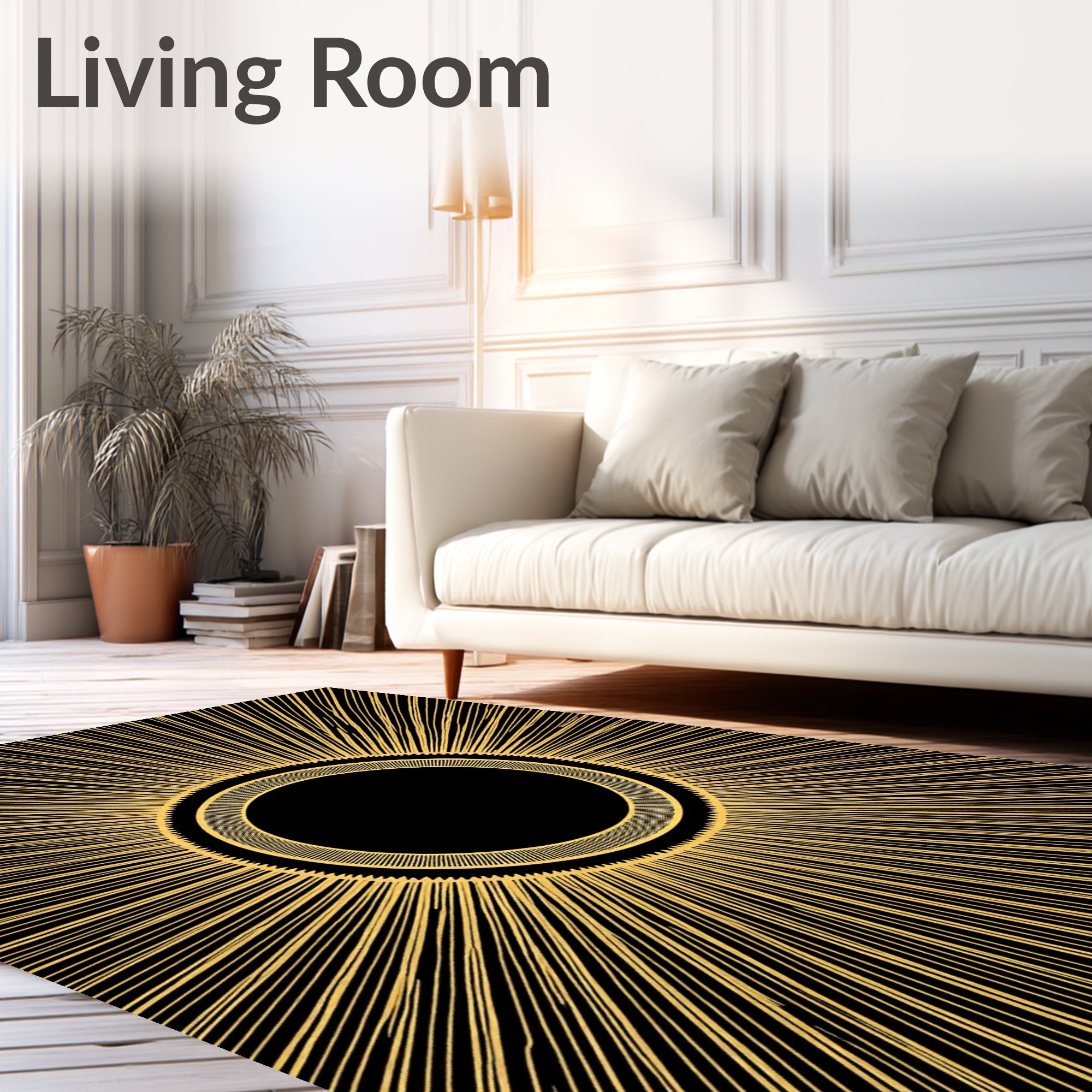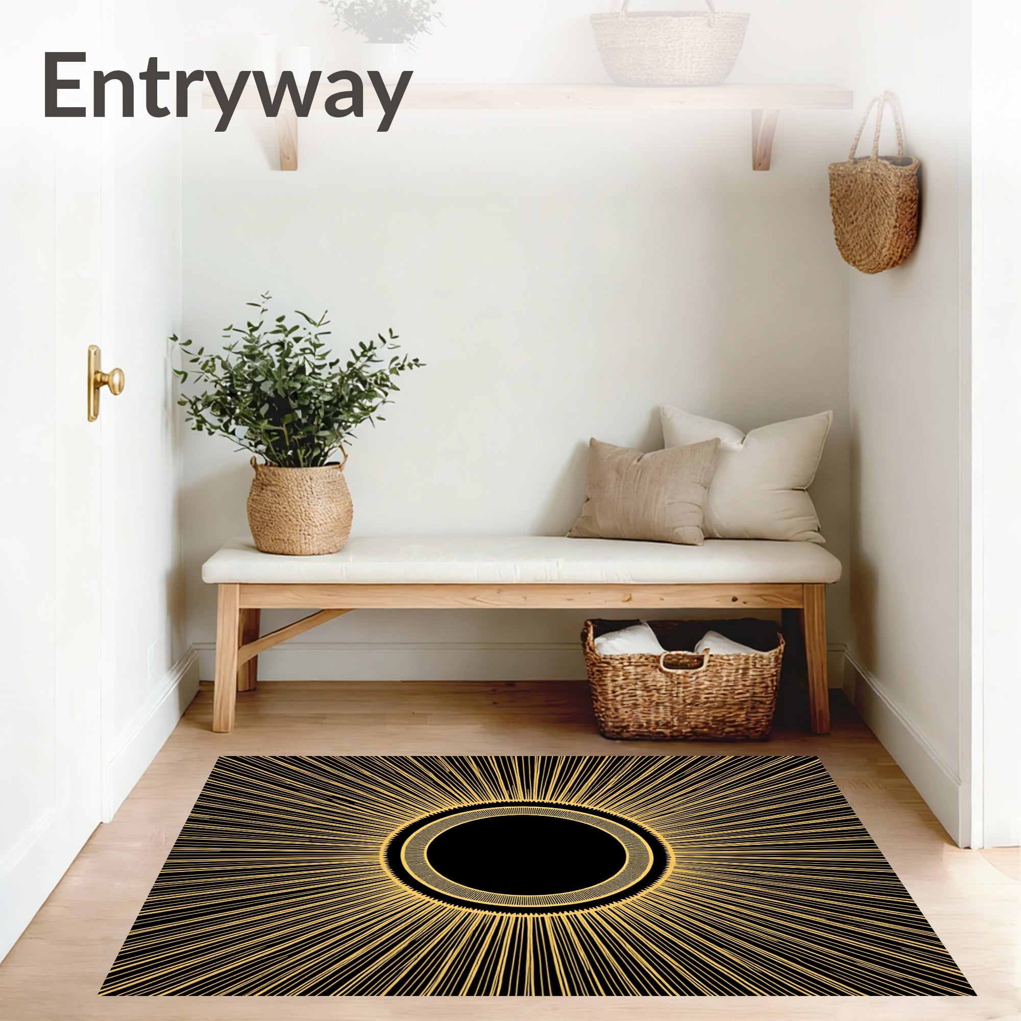 Flatwoven High Traffic Area Rug, Dazzling Sunburst Radial Symmetry Showcase Highlight Display, Non Slip, Stain Resistant, Washable Area Rugs for Living Room, Bedroom (Gold) Overview: