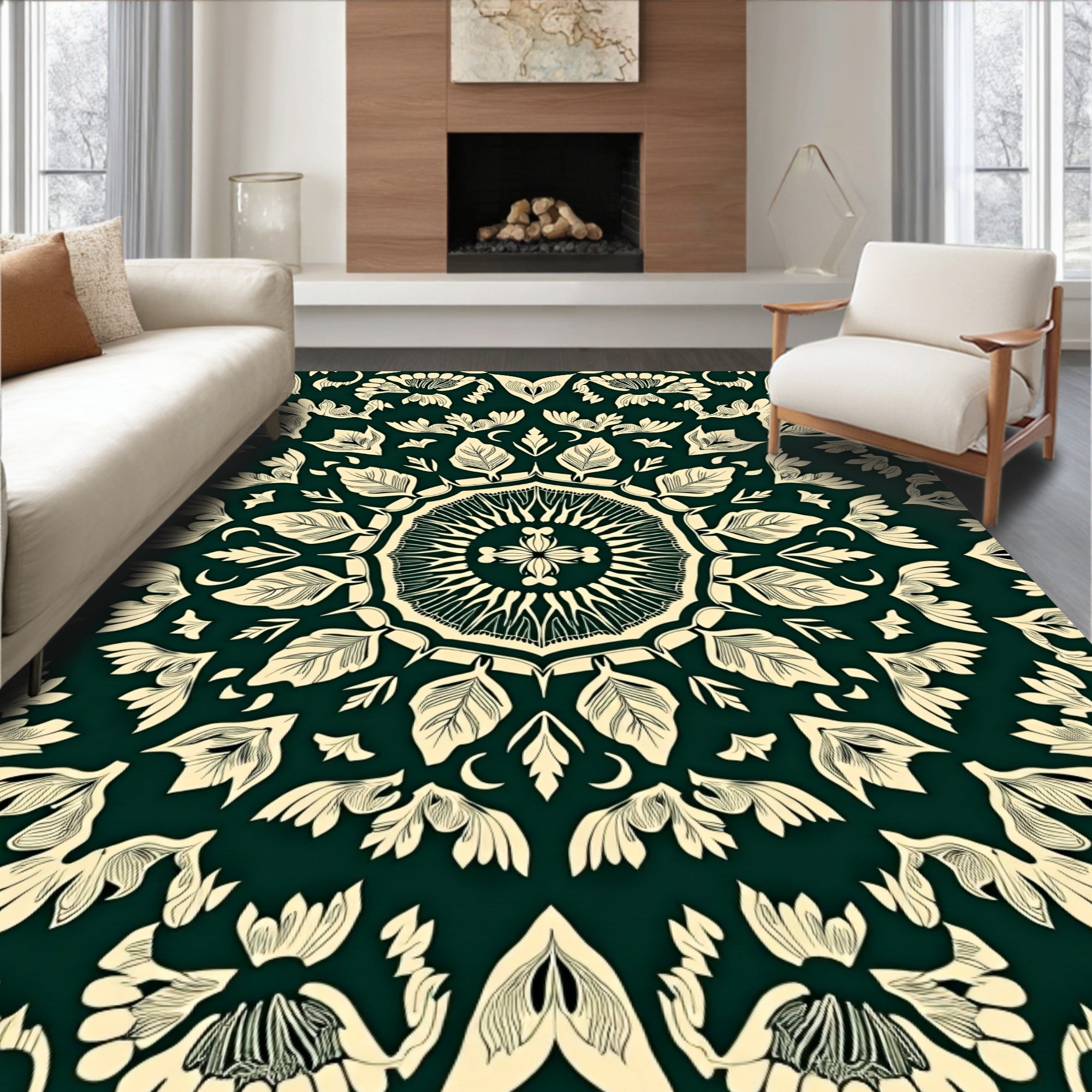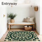 Flatwoven High Traffic Area Rug, Delicate Composition with Layered Leaf, Non Slip, Stain Resistant, Washable Area Rugs for Living Room, Bedroom (Green) Overview: