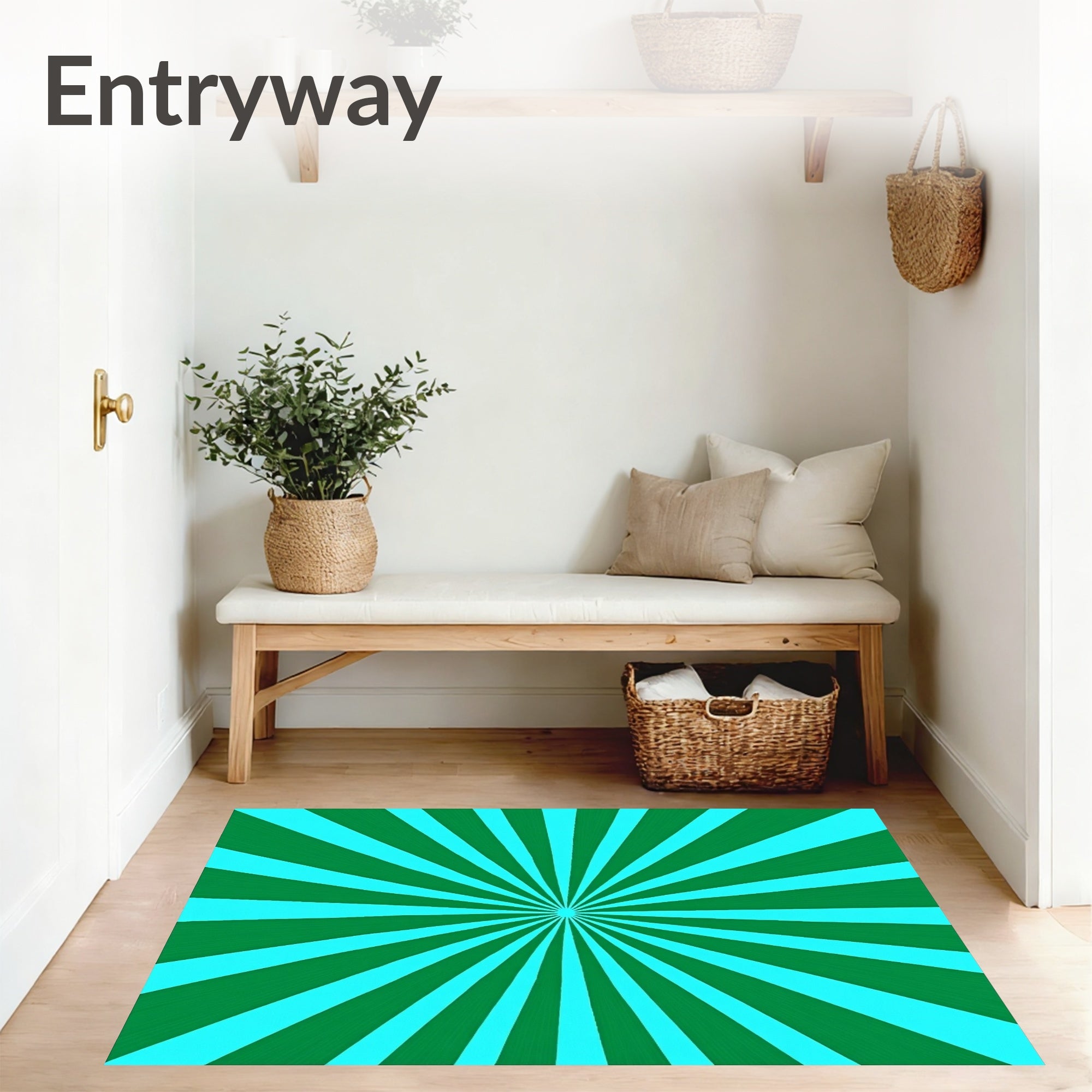 Flatwoven High Traffic Area Rug, Diagonal Burst Fade Contemporary Entry, Non Slip, Stain Resistant, Washable Area Rugs for Living Room, Bedroom (Green) Overview: