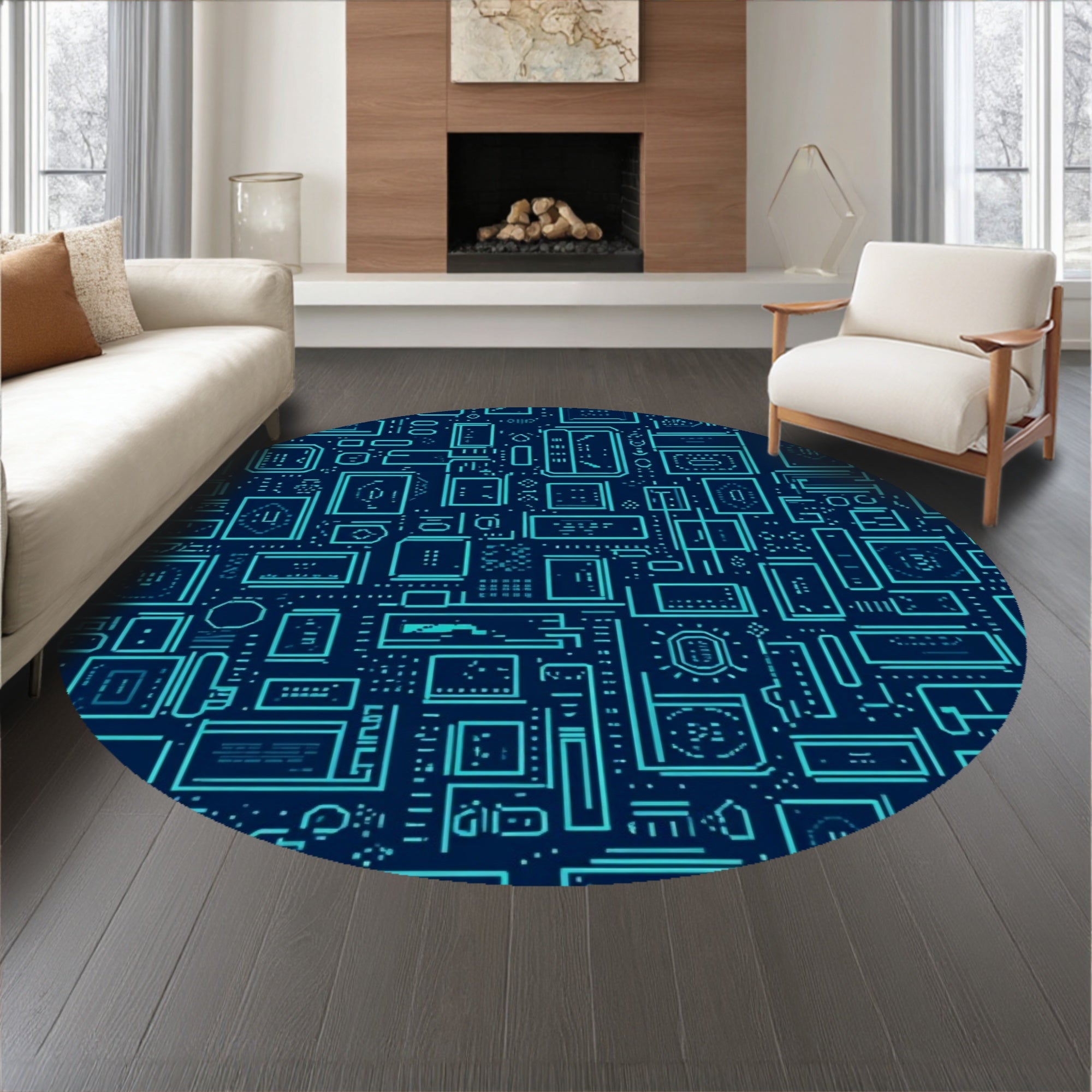 Flatwoven High Traffic Area Rug, Digital Joystick Arcade Mosaic Contemporary Artistic, Non Slip, Stain Resistant, Washable Area Rugs for Living Room, Bedroom (Blue) Overview: