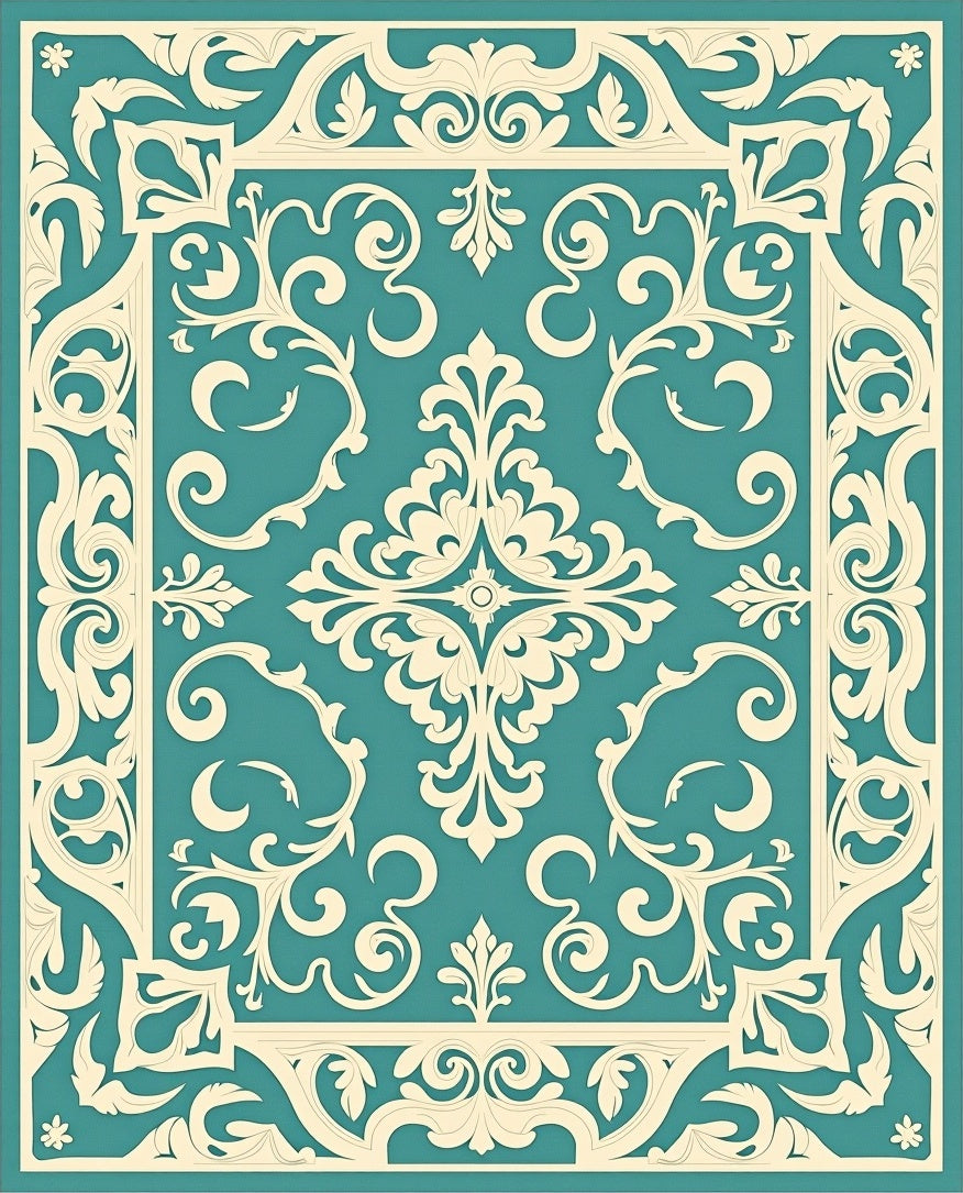 Distressed Damask Scrollwork with Ornate Flourishes Style (Beige)