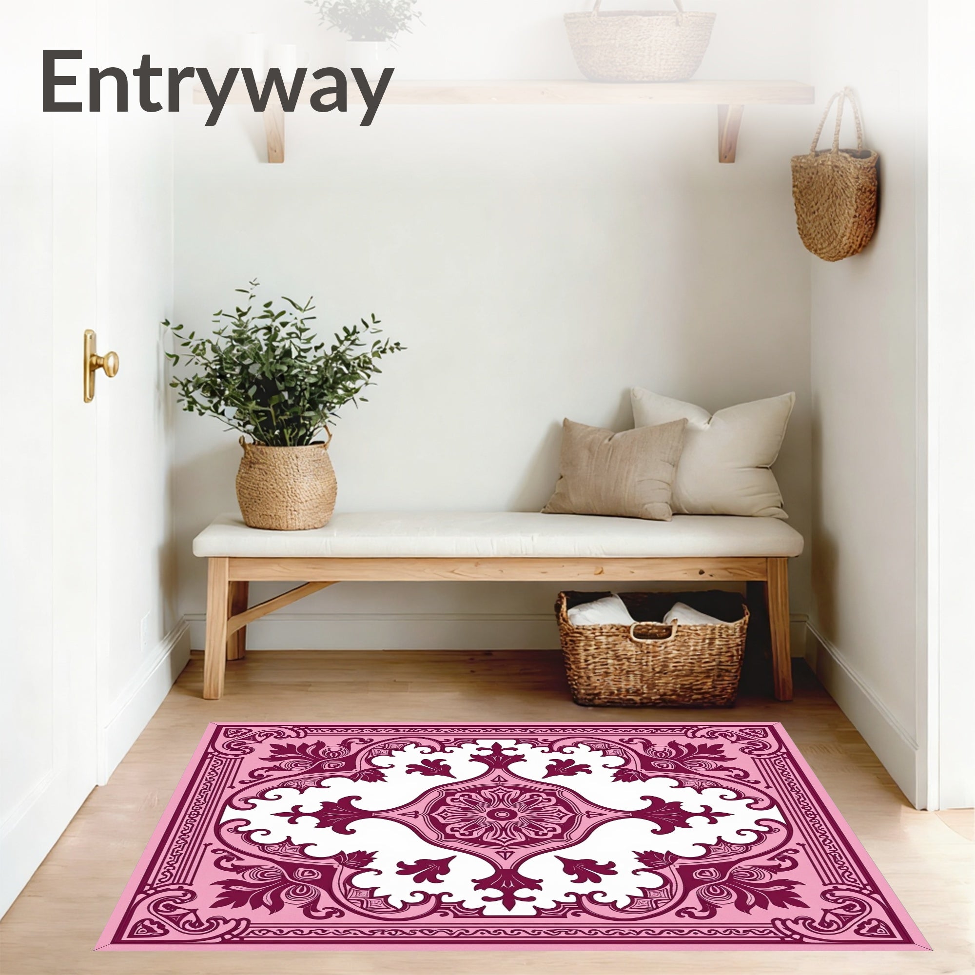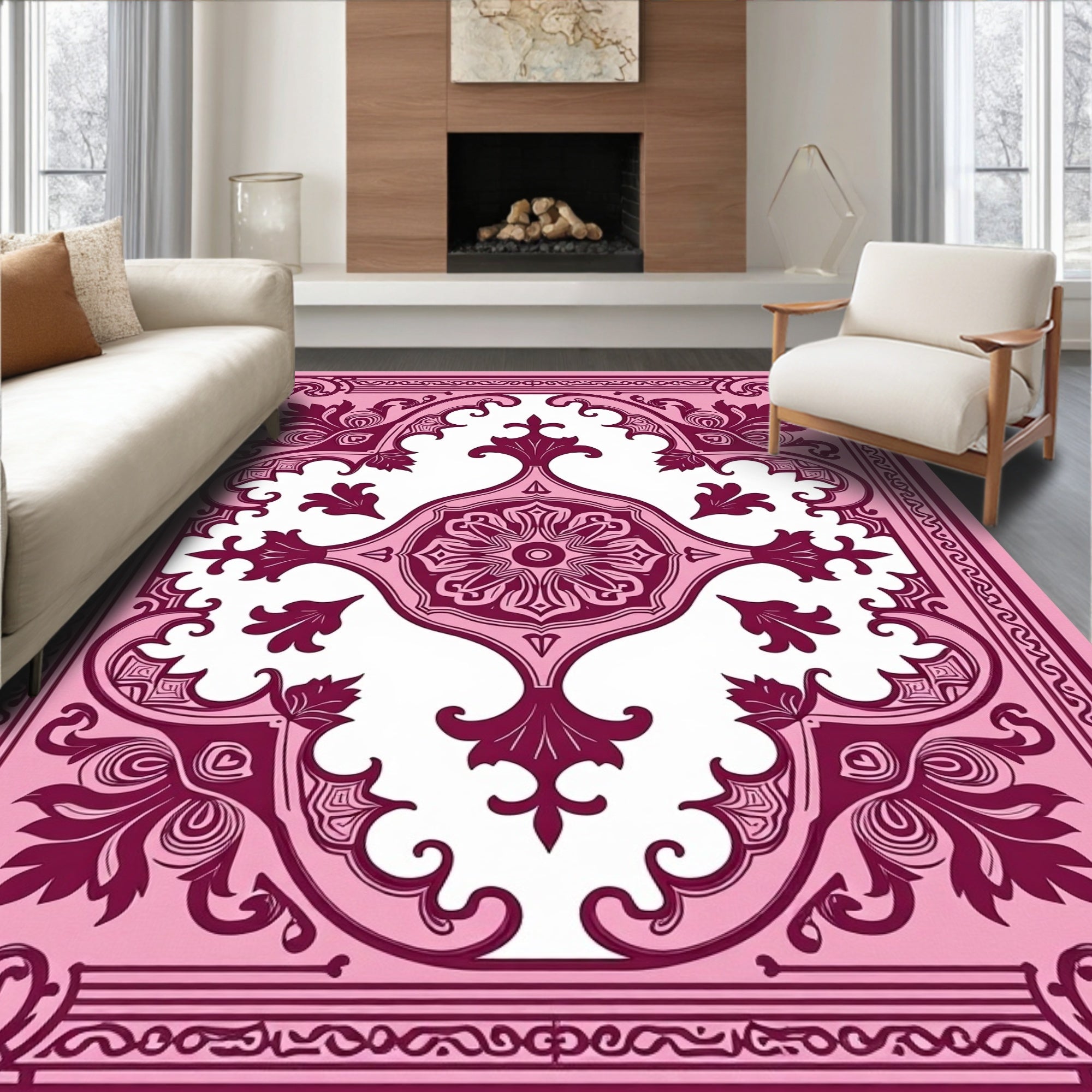 Flatwoven High Traffic Area Rug, Distressed Vintage Damask Boho Style Fade Effect Design, Non Slip, Stain Resistant, Washable Area Rugs for Living Room, Bedroom (Pink) Overview: