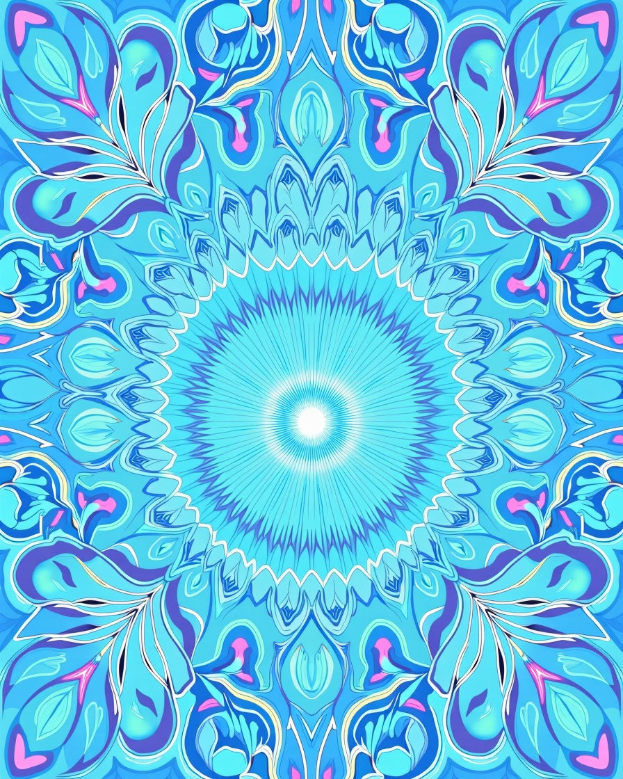 Dreamlight Kaleidoscope Interlocking Petals with Ethereal Swirls (Blue)