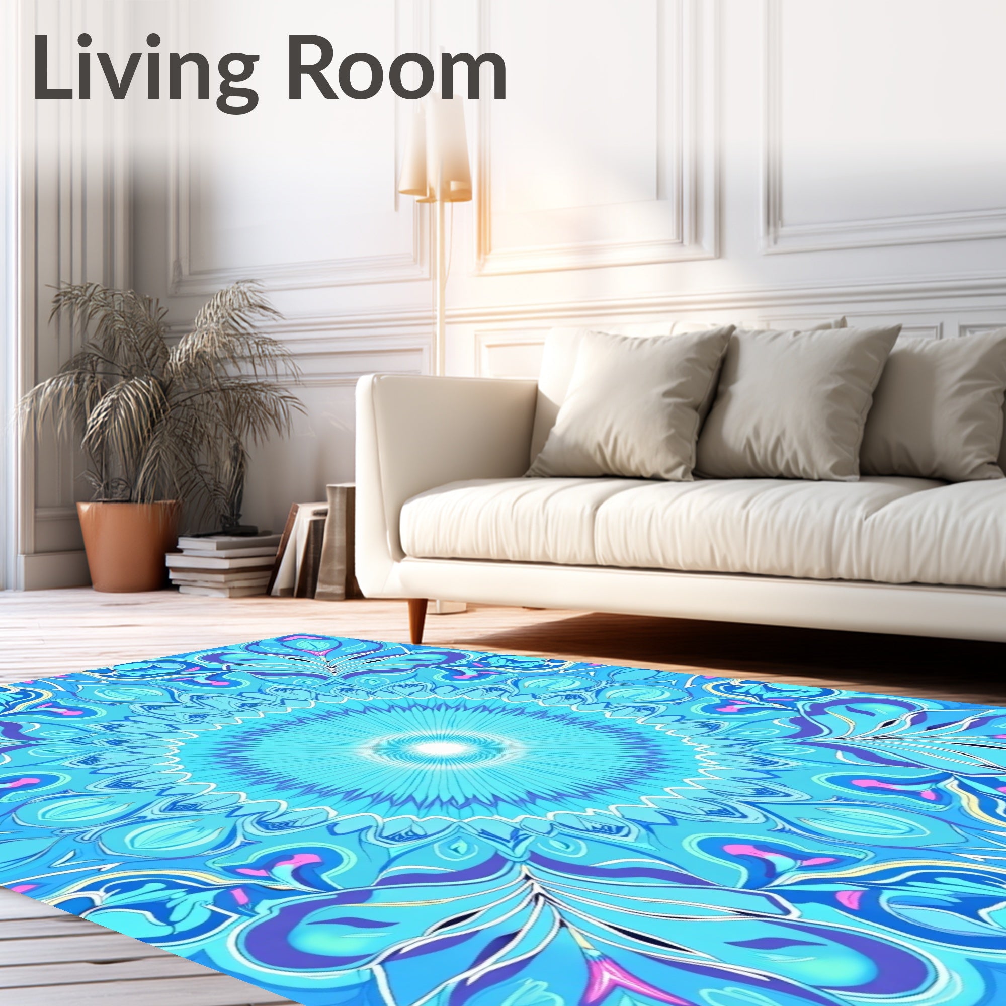 Flatwoven High Traffic Area Rug, Dreamlight Kaleidoscope Interlocking Petals with Ethereal Swirls, Non Slip, Stain Resistant, Washable Area Rugs for Living Room, Bedroom (Blue) Overview: