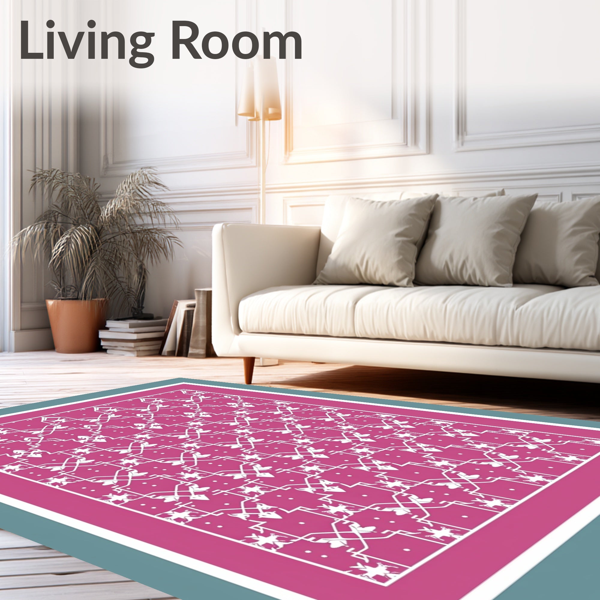 Flatwoven High Traffic Area Rug, Elegant Bordered Contemporary Lattice Artistic, Non Slip, Stain Resistant, Washable Area Rugs for Living Room, Bedroom (Pink) Overview: