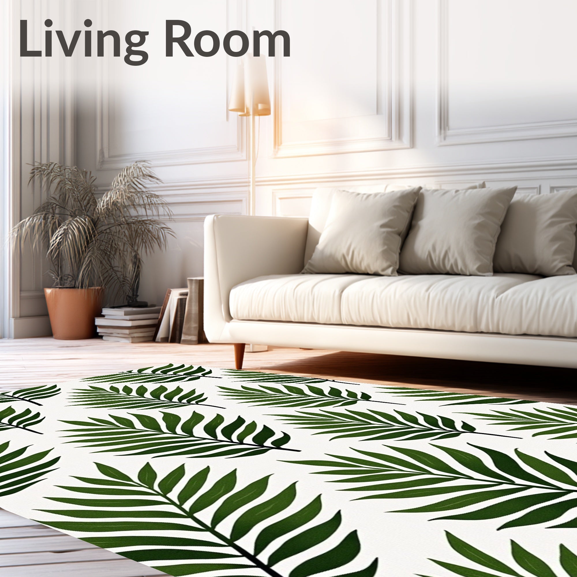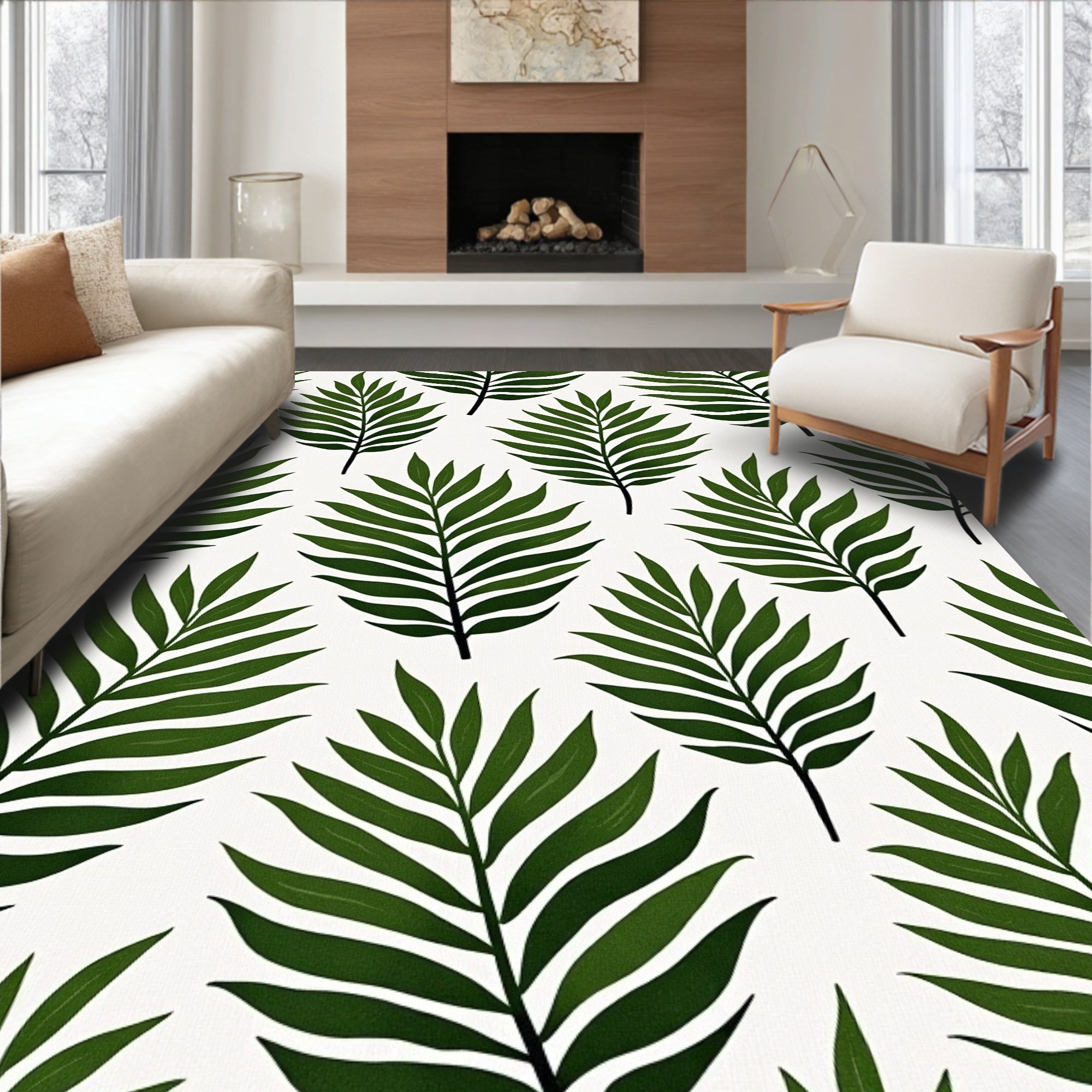 Flatwoven High Traffic Area Rug, Elegant Botanical Fern Leaf Jungle Nature Inspired Artisan, Non Slip, Stain Resistant, Washable Area Rugs for Living Room, Bedroom (White) Overview: