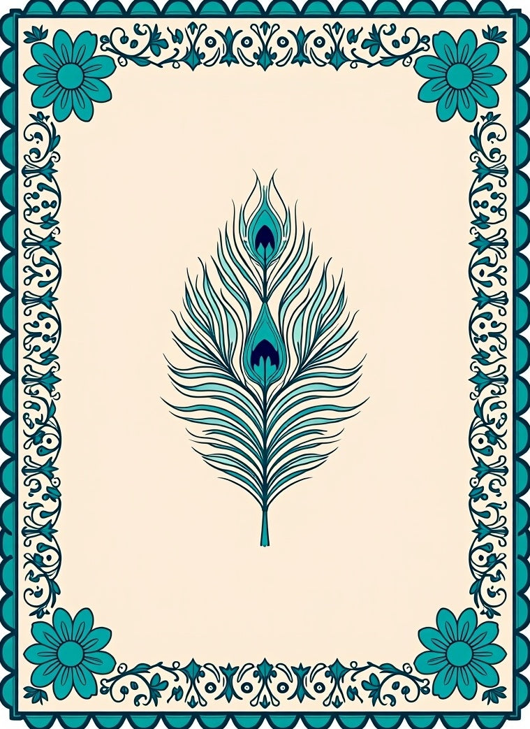Elegant Botanical Peacock Chrysanthemum Floral Bordered (Ivory)