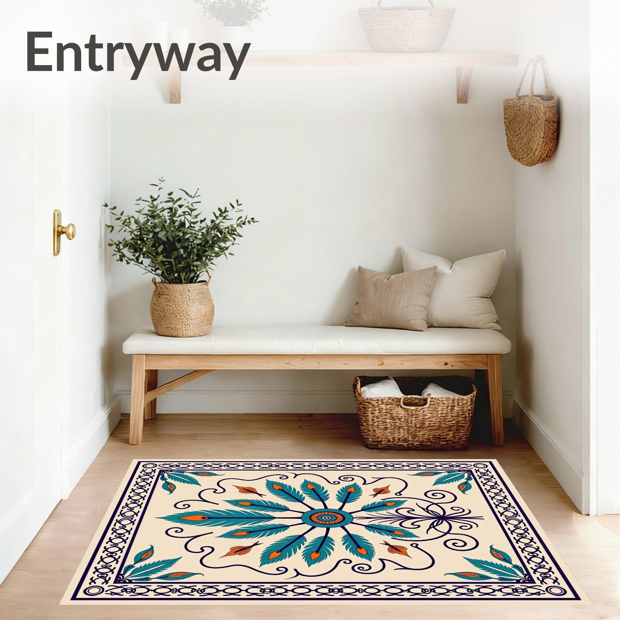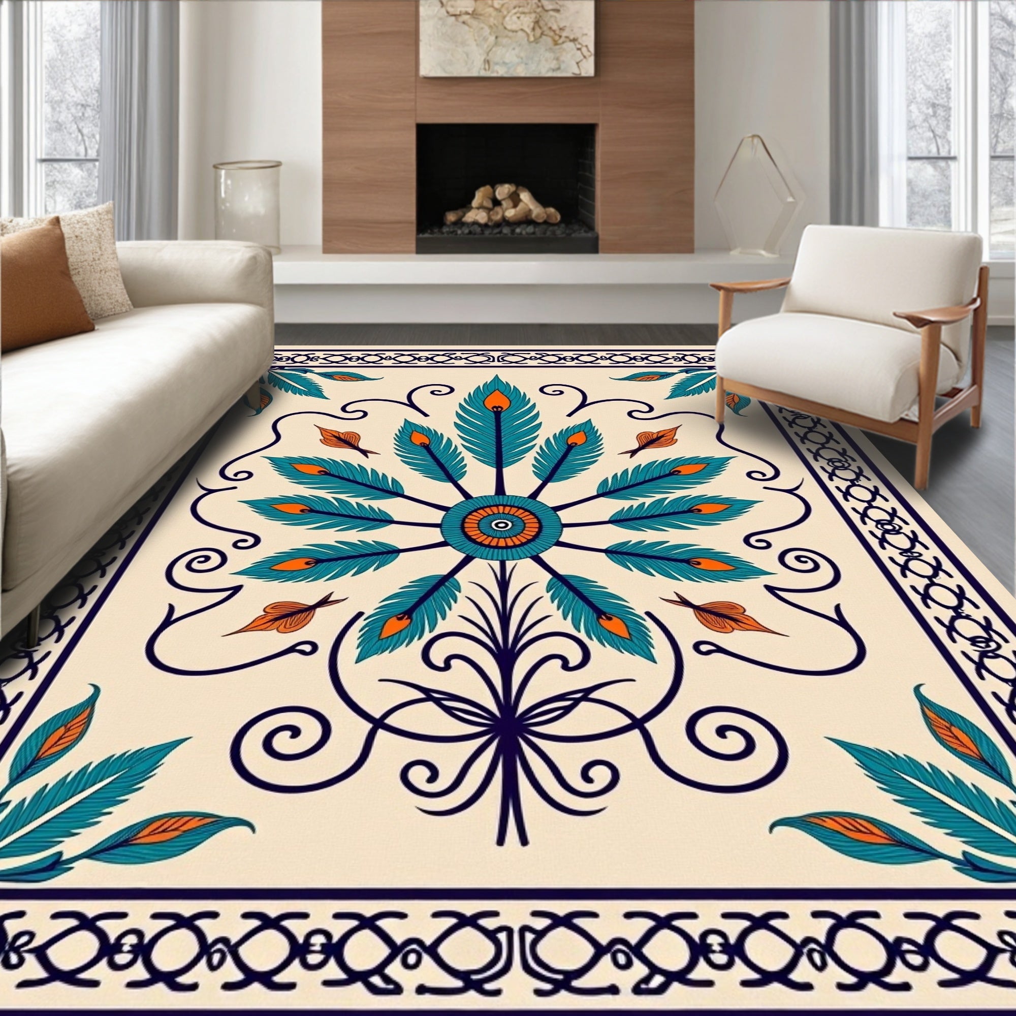 Flatwoven High Traffic Area Rug, Elegant Botanical Peacock Medallion, Non Slip, Stain Resistant, Washable Area Rugs for Living Room, Bedroom (Beige) Overview: