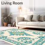 Flatwoven High Traffic Area Rug, Elegant Contrast Floral with Delicate Swirling Vines and Faded Boho, Non Slip, Stain Resistant, Washable Area Rugs for Living Room, Bedroom (Ivory) Overview: