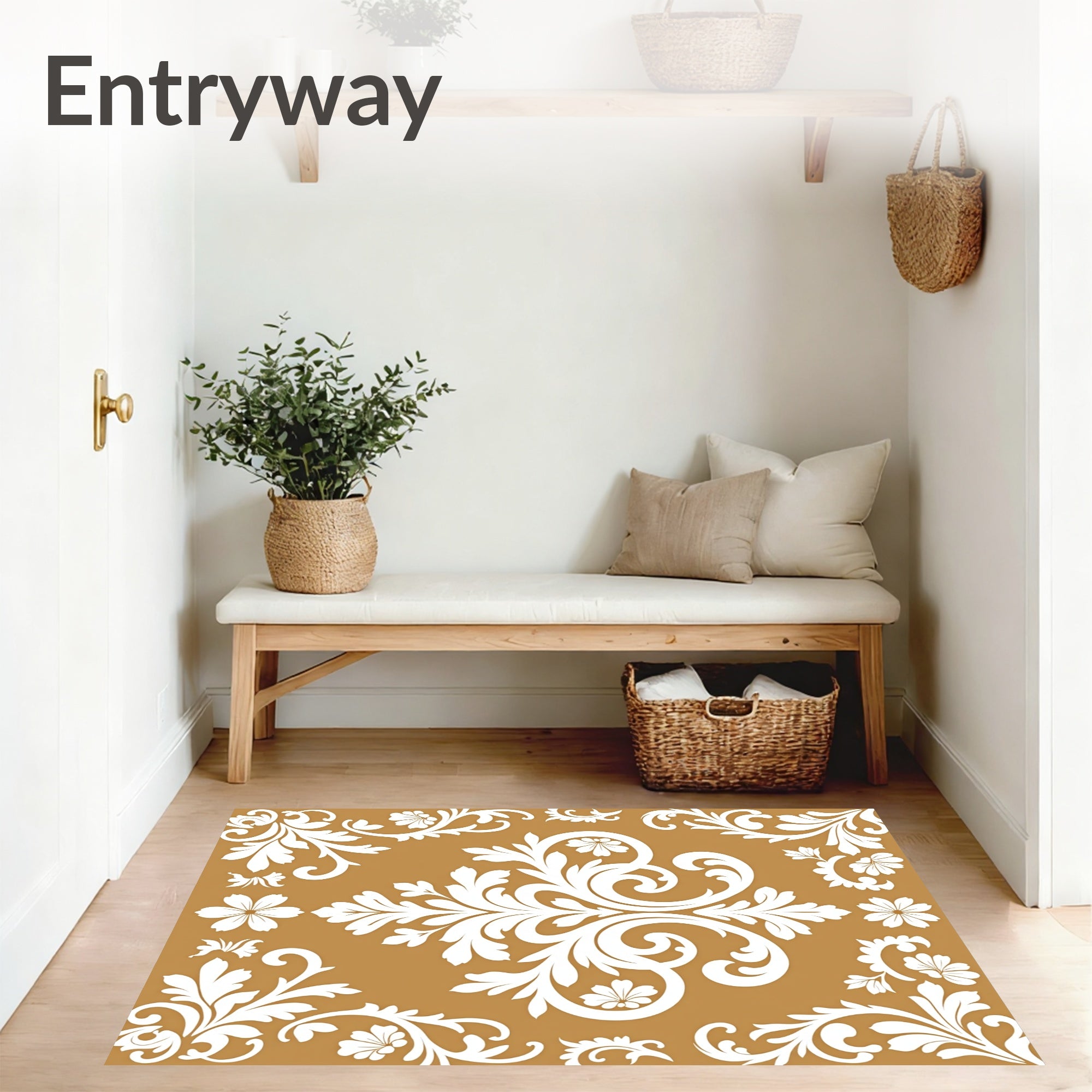 Elevate your interior with this Golden White Floral Filigree Ornament Rug, a masterpiece of Traditional design that brings a sense of timeless luxury to any Living Room. The warm, honey-toned tan backdrop provides a sophisticated contrast to the intricate ivory damask patterns, making it a focal point for both Modern and Vintage-inspired spaces. Engineered for the demands of a busy home, this Area Rug is impressively Durable and entirely Machine Washable, ensuring its regal beauty remains pristine over time. Certified with OEKO-TEX Standard 100, it guarantees a safe environment for your family while its low-maintenance height allows it to glide effortlessly under furniture and doors.
