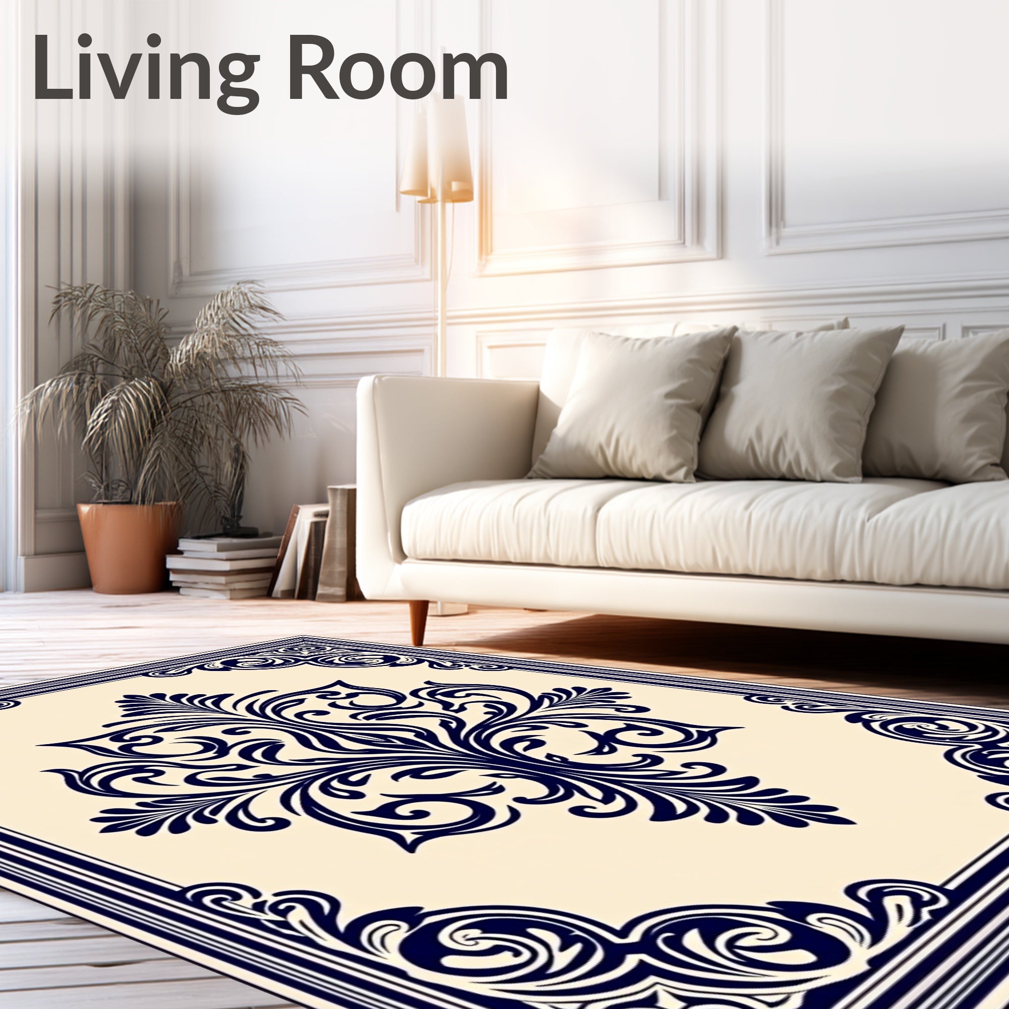 Flatwoven High Traffic Area Rug, Elegant Damask Heritage Ancient Artistic Charm, Non Slip, Stain Resistant, Washable Area Rugs for Living Room, Bedroom (Ivory) Overview: