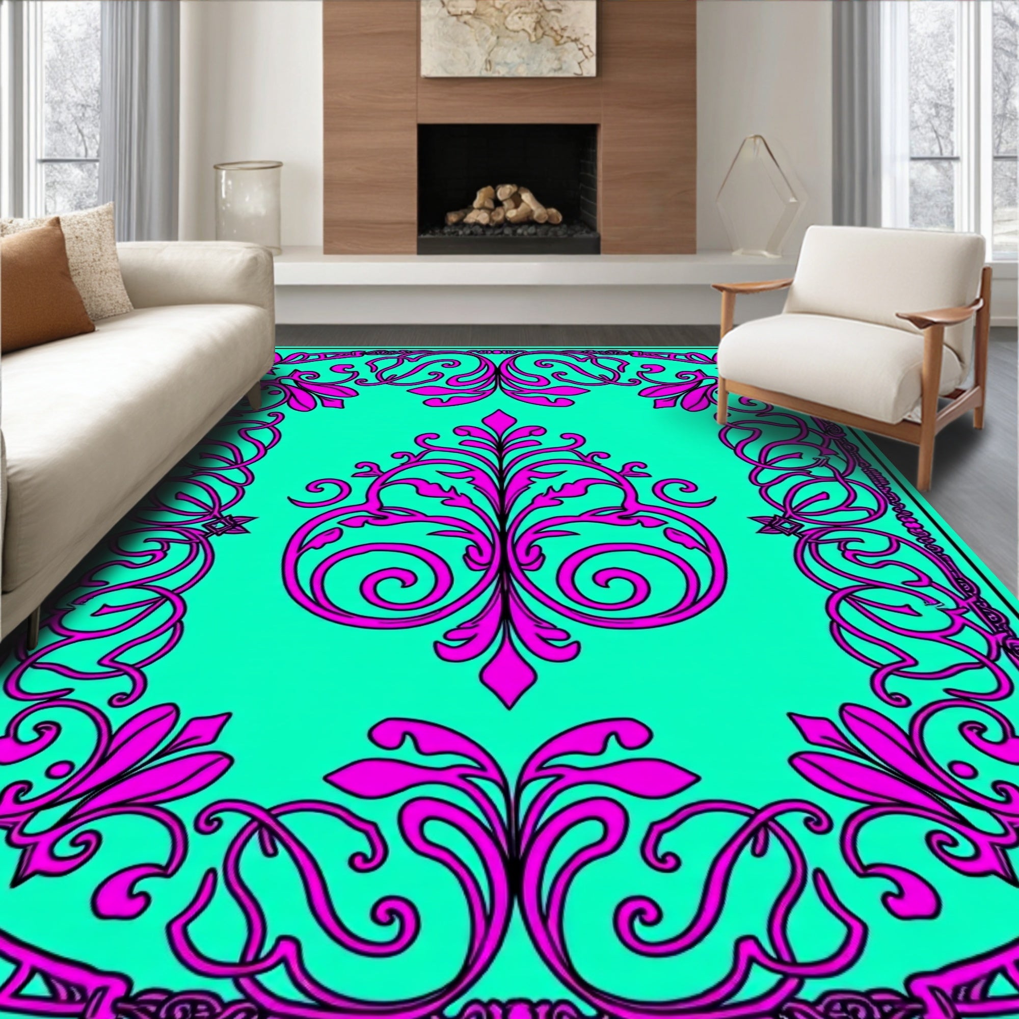 Flatwoven High Traffic Area Rug, Elegant Damask Heritage Motif Non Slip Covering, Non Slip, Stain Resistant, Washable Area Rugs for Living Room, Bedroom (Pink) Overview:
