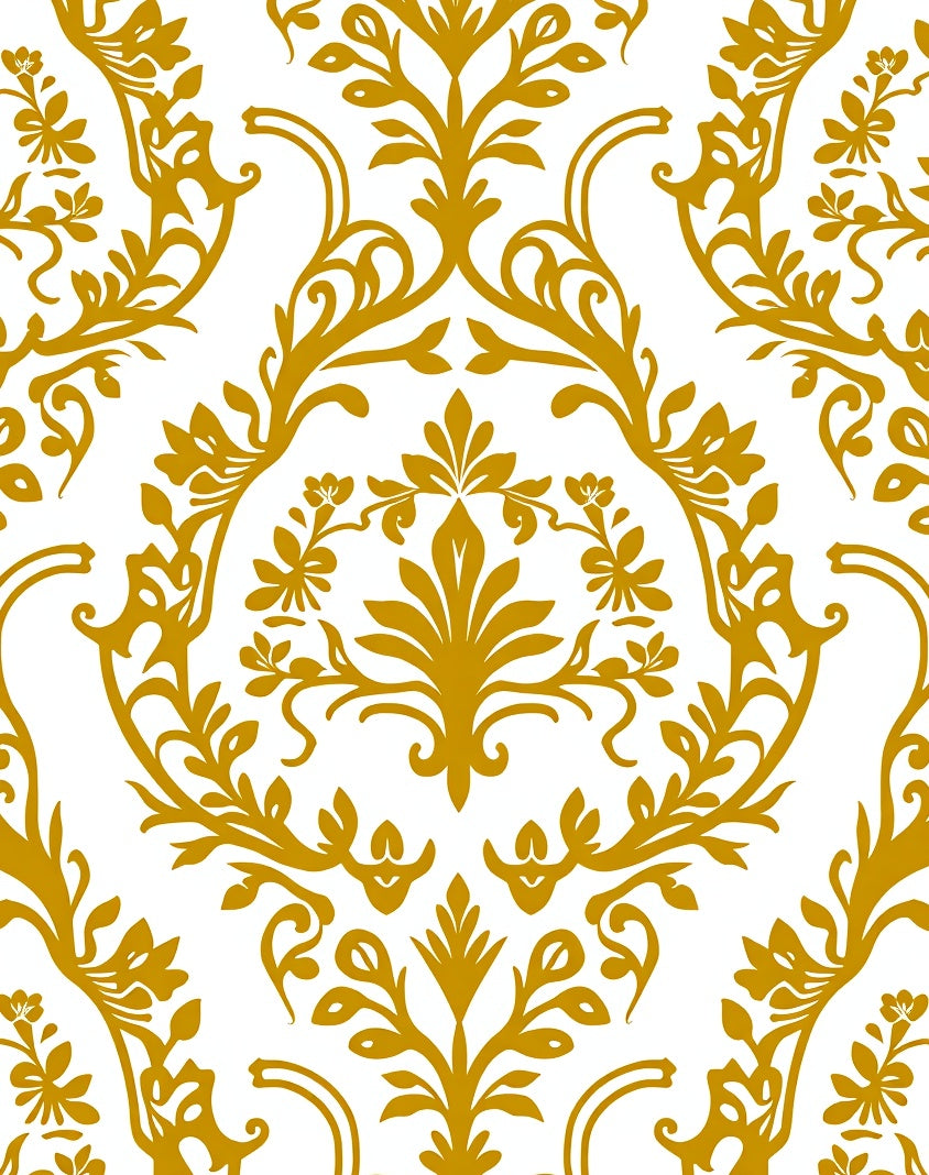Drawing inspiration from the opulence of the French Regency and the precision of Italian Renaissance textiles, this design celebrates a lineage of grandeur. The sun-gilded vines climb in rhythmic symmetry, blooming against a stark white void that offers a contemporary breath to historical motifs. These aren't just swirls; they are golden scrolls unfurling in a dance of light and shadow, evoking the hallowed halls of a Venetian palazzo or the hushed elegance of a Beaux-Arts salon. Step onto this tableau and the room undergoes a metamorphosis—heavy architecture feels airy, and modern minimalism finds its soul through classical contrast. It is designed for the heart-led homebuilder who finds beauty in the intersection of regal history and daily ritual. For the seeker of quiet drama who believes a home should be a sanctuary of art, this is more than decor. Walk upon gold; live in reverence.