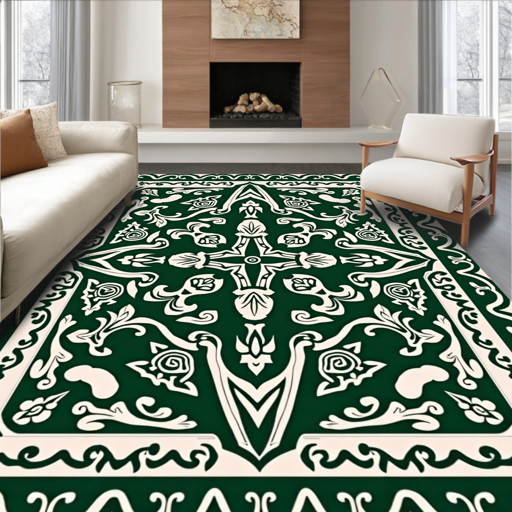 Flatwoven High Traffic Area Rug, Elegant Floral Vintage Medallion Low Pile, Non Slip, Stain Resistant, Washable Area Rugs for Living Room, Bedroom (Green) Overview: