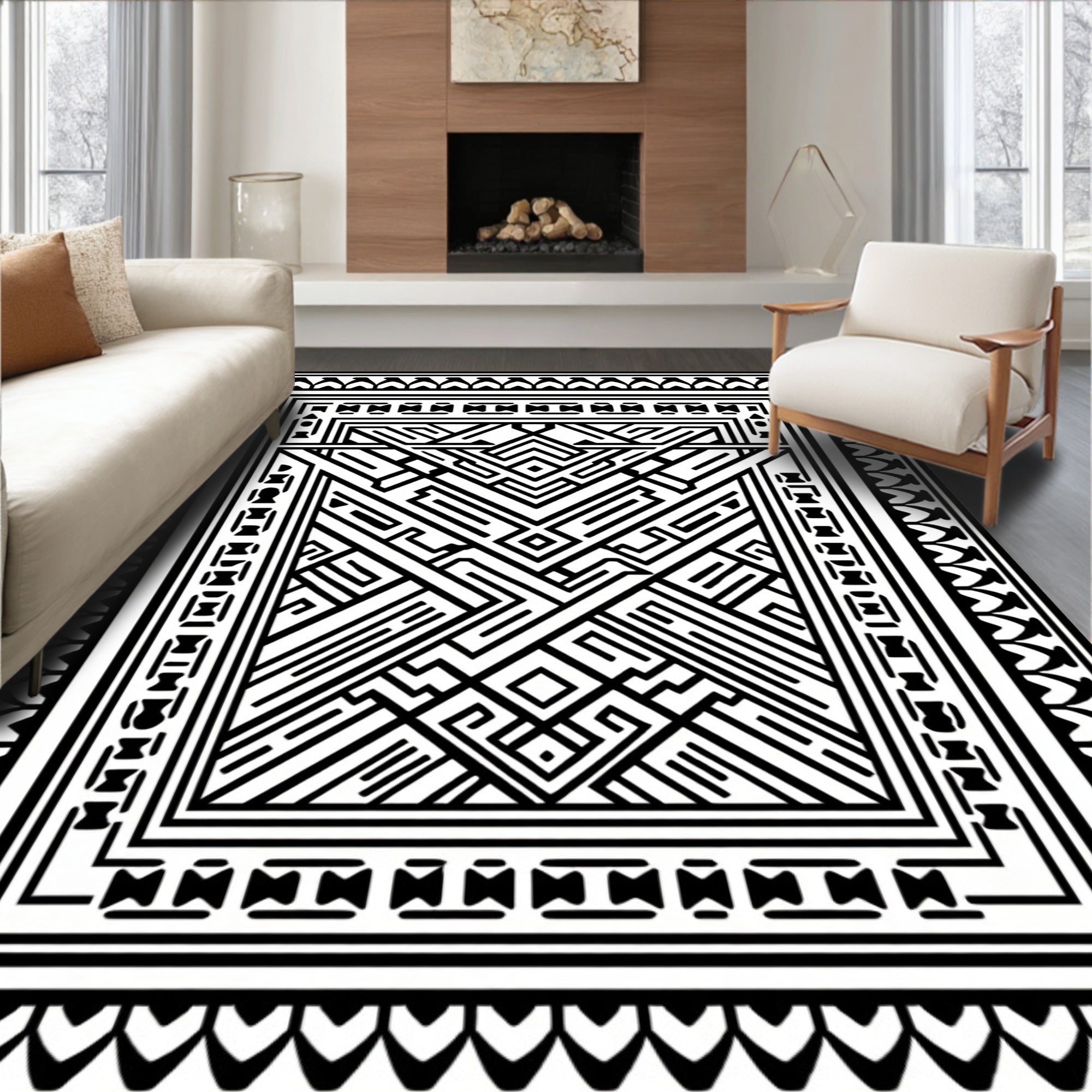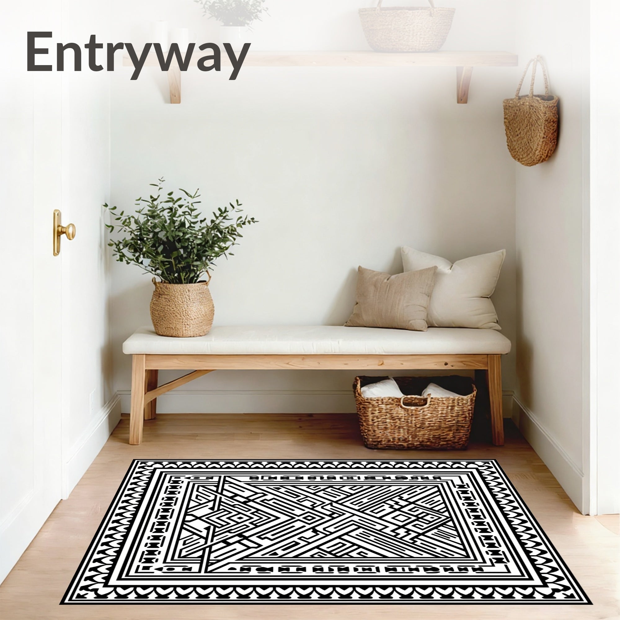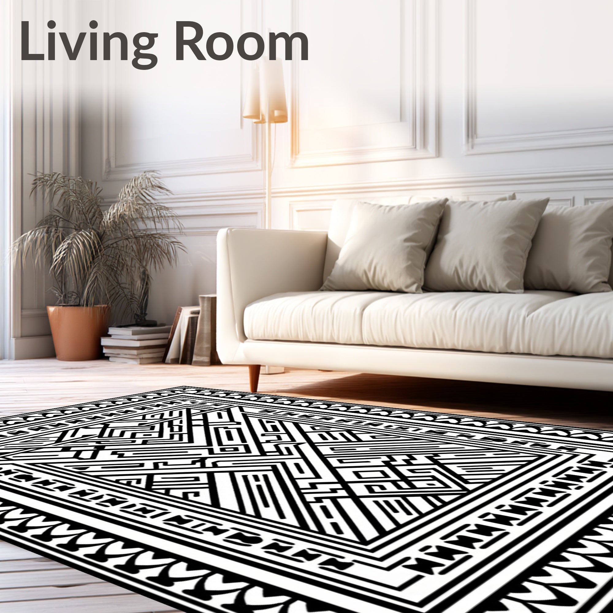 Flatwoven High Traffic Area Rug, Elegant Hexagonal Maze Tapestry With Interlocking Motifs, Non Slip, Stain Resistant, Washable Area Rugs for Living Room, Bedroom (Black) Overview: