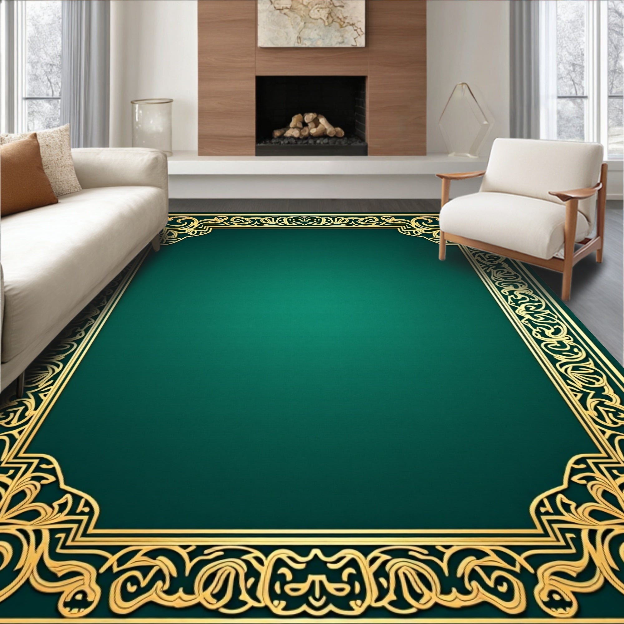 Flatwoven High Traffic Area Rug, Elegant Jade Dynasty Heritage Artisan Masterwork, Non Slip, Stain Resistant, Washable Area Rugs for Living Room, Bedroom (Green) Overview: