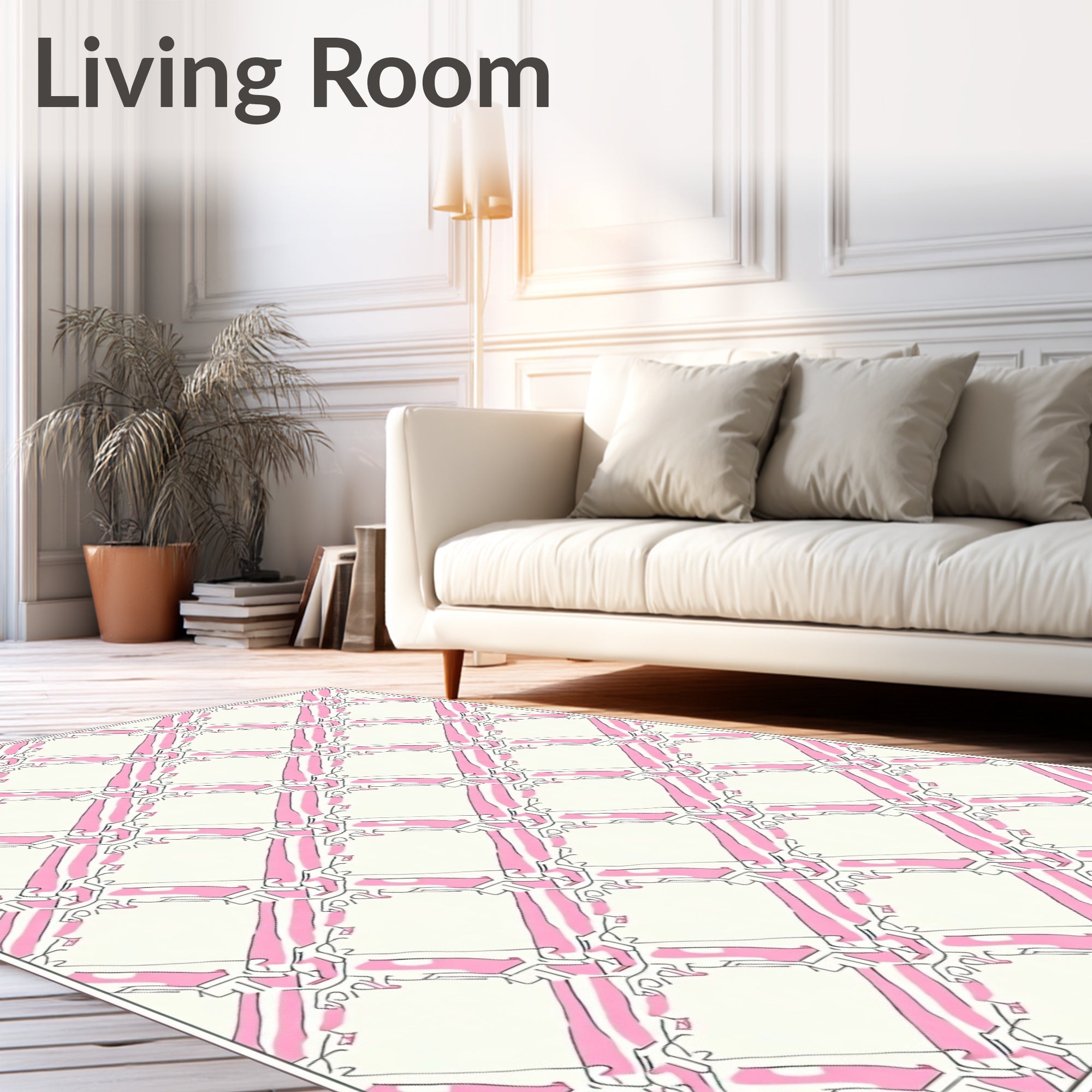 Flatwoven High Traffic Area Rug, Elegant Lattice Foldable Eco Friendly, Non Slip, Stain Resistant, Washable Area Rugs for Living Room, Bedroom (Pink) Overview:
