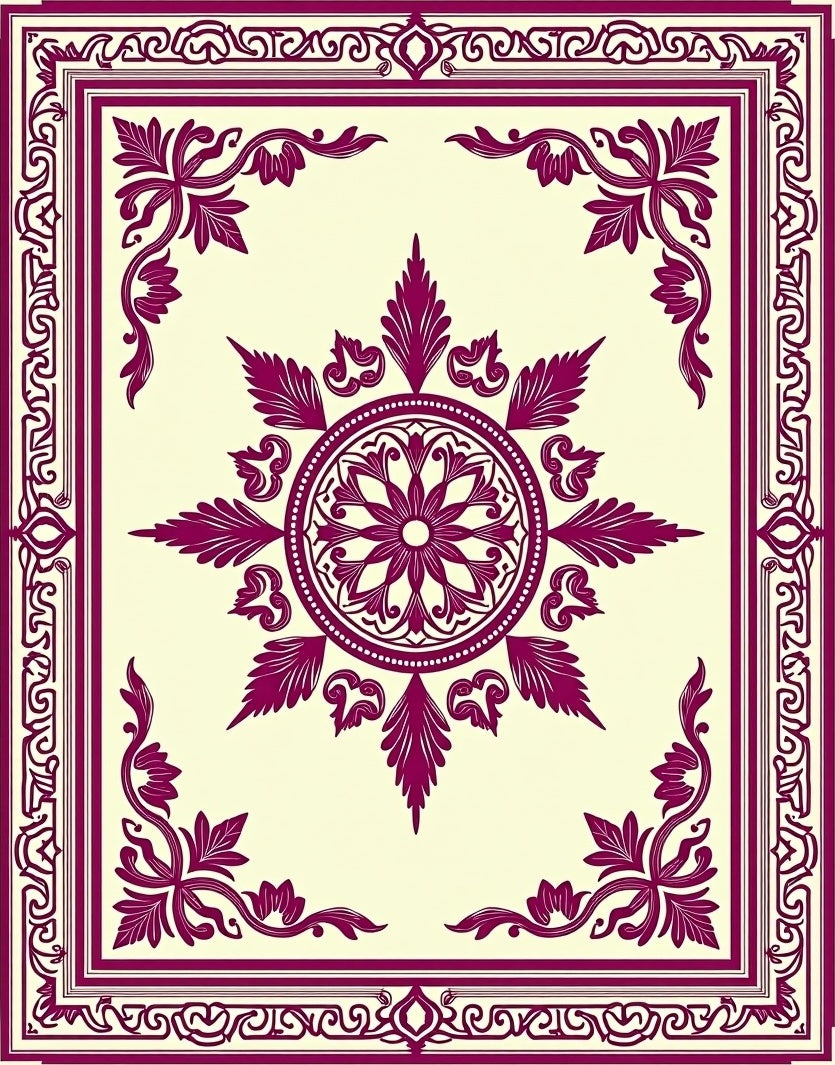 Born from the intersection of Neo-Victorian elegance and the rhythmic geometry of Folk Heritage, this rug serves as a visual ode to the hallowed libraries and sun-drenched parlors of the past. The design draws inspiration from the intricate linework of 19th-century bookbinding and the opulent symmetries of Persian textile traditions. Deep plum acanthus leaves flourish against a cream field like ink spreading across parchment, while the central medallion radiates outward with the quiet authority of a cathedral rose window. It is a piece designed for the Romantic Macabre Revival—for the soul drawn to depth over decorum and the heart-led homebuilder who believes magic belongs in the everyday. When placed, the room undergoes a hushed metamorphosis: walls seem to soften, modern edges lose their bite, and the floor becomes a tableau of quiet drama. Step onto this scene and feel time slow; this is not just decor—it is a declaration to live in reverence.