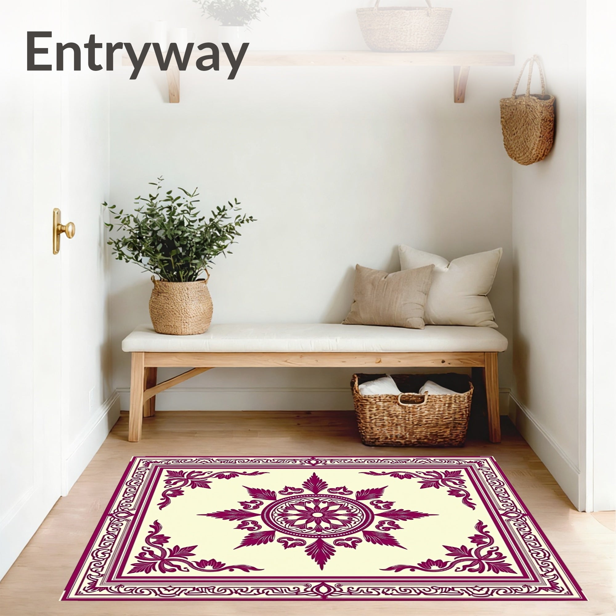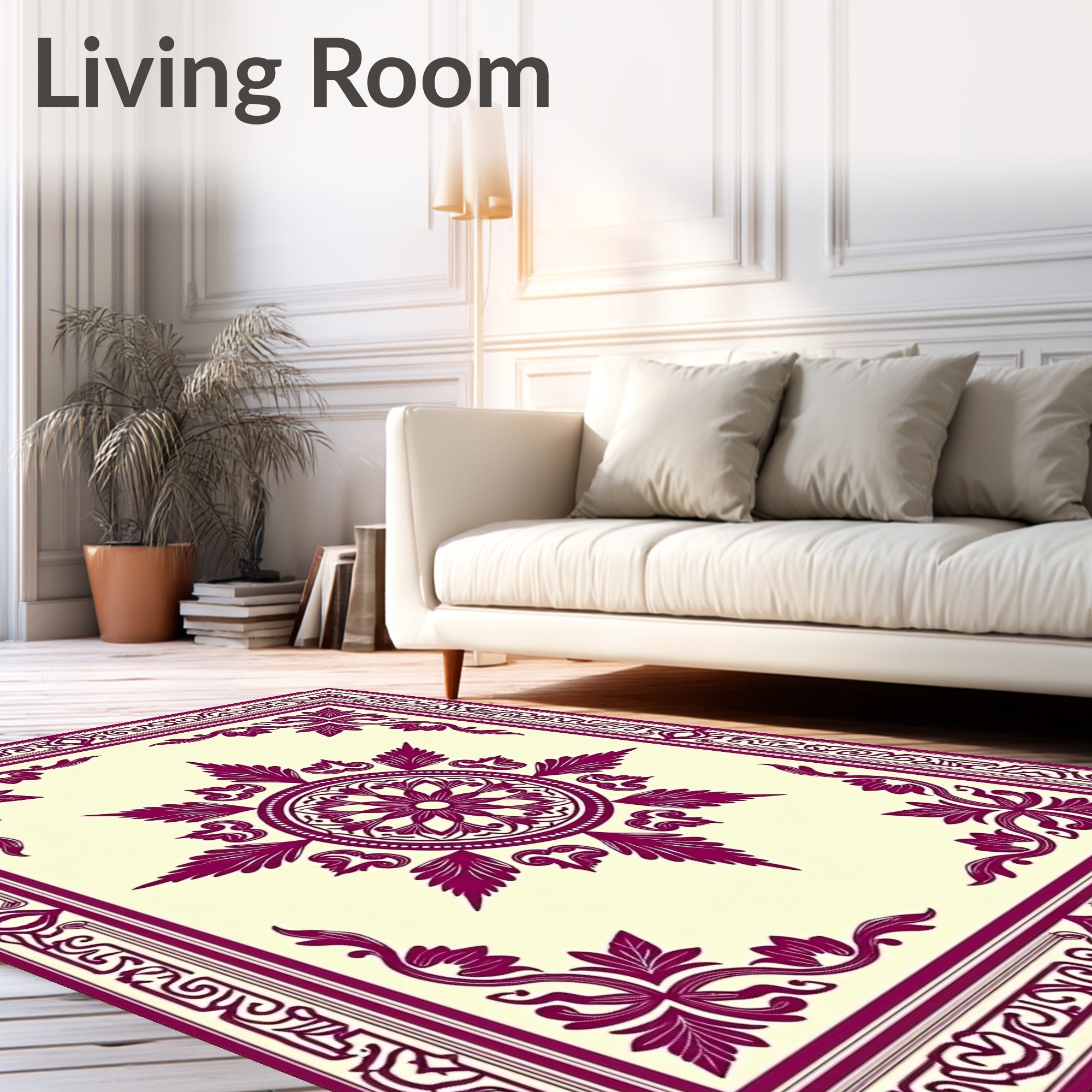 Elevate your home with the Deep Plum Medallion Floral Frame Rug, a sophisticated blend of traditional artistry and modern resilience. This Vintage-inspired Area Rug features a striking plum-pink floral center and a complex geometric border that adds instant architectural definition to any Living Room or bedroom. Built to withstand the demands of daily life, its Durable construction ensures high performance in busy households, while the Low pile height allows for effortless door clearance. For ultimate peace of mind, this rug is Machine Washable and OEKO-TEX Standard 100 certified, guaranteeing a safe, chemical-free foundation for your family. Whether anchoring a small reading nook or covering a grand floor, this piece offers timeless elegance with contemporary ease.