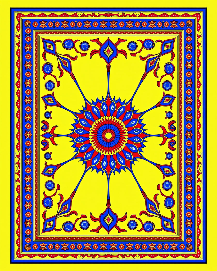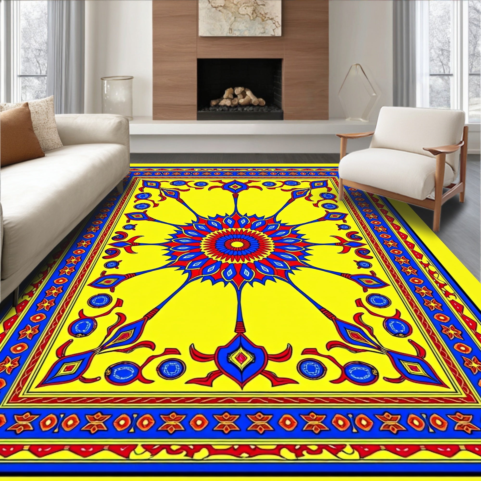 Flatwoven High Traffic Area Rug, Elegant Medallion Kaleidoscope Artisan, Non Slip, Stain Resistant, Washable Area Rugs for Living Room, Bedroom (Yellow) Overview: