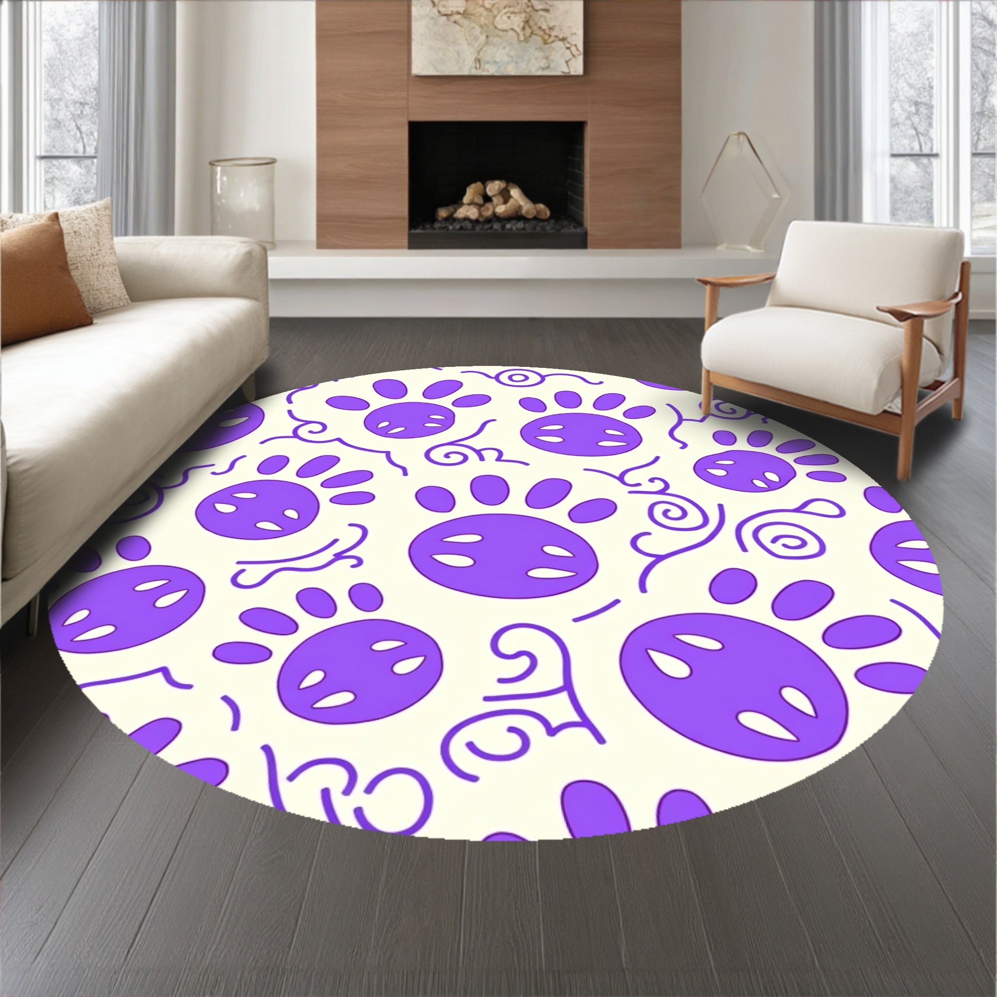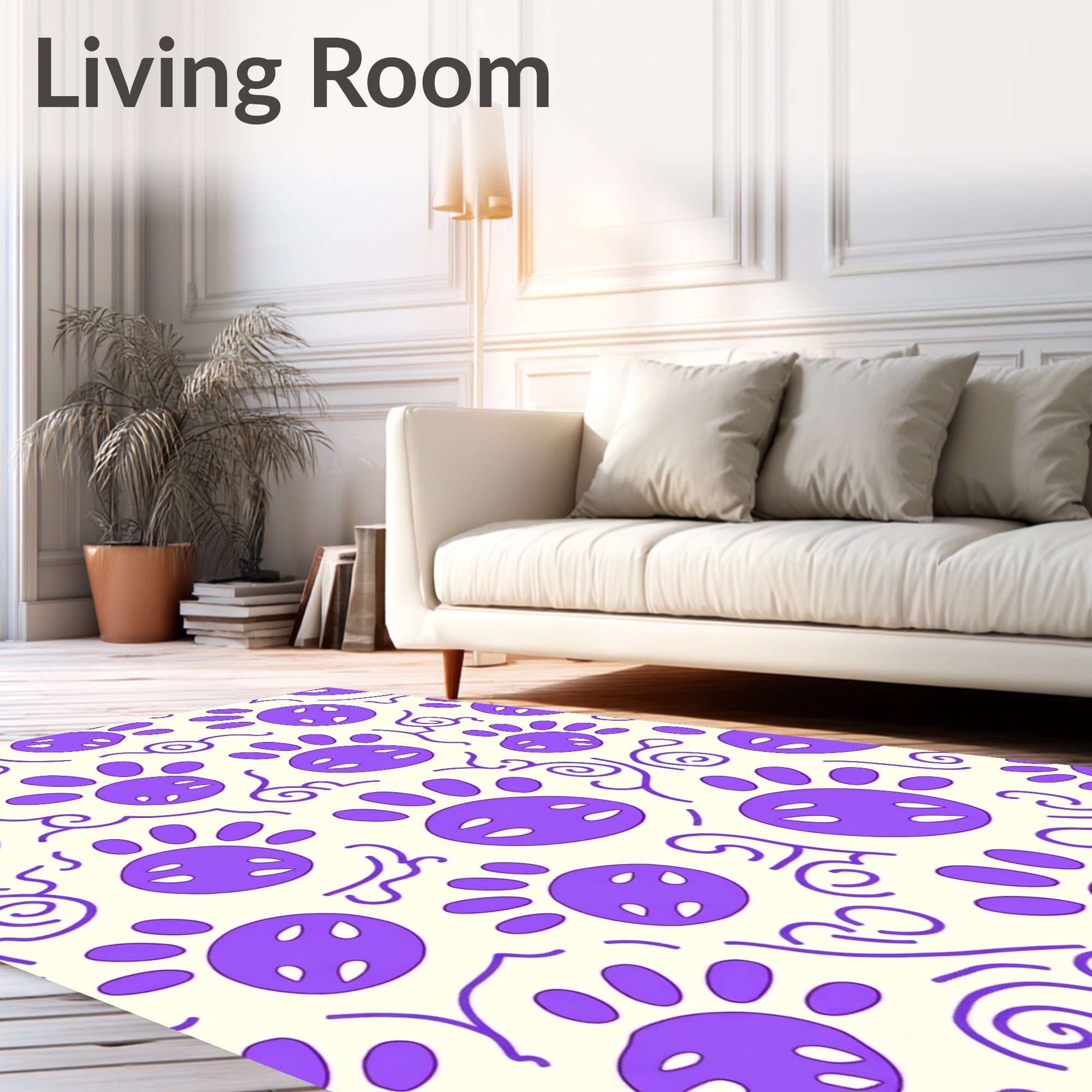 Flatwoven High Traffic Area Rug, Elegant Paw Print Decorative With Cute Puppy Motif, Non Slip, Stain Resistant, Washable Area Rugs for Living Room, Bedroom (Purple) Overview:
