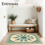 Flatwoven High Traffic Area Rug, Elegant Peacock Botanical Garden Chrysanthemum Entrance, Non Slip, Stain Resistant, Washable Area Rugs for Living Room, Bedroom (Beige) Overview: