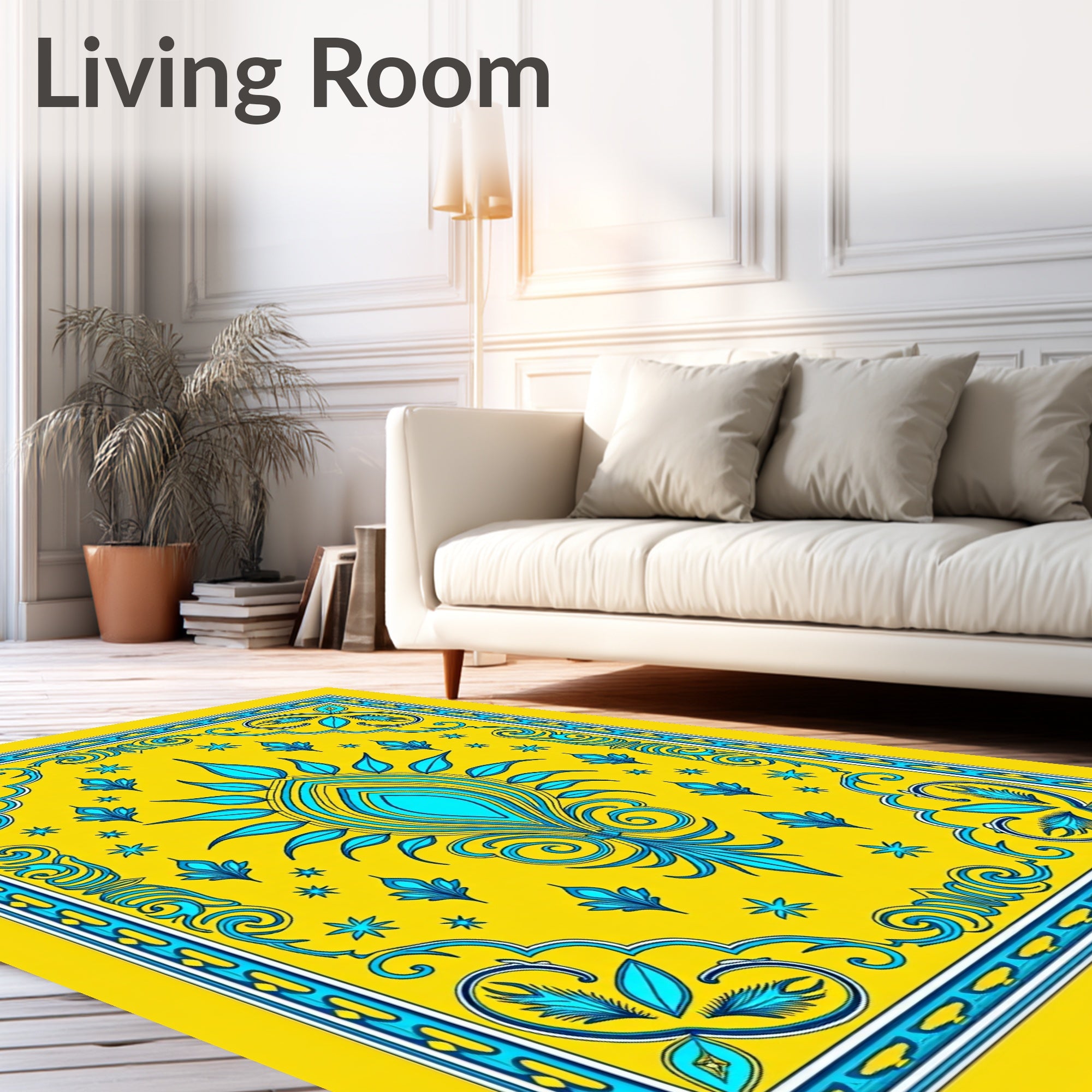 Flatwoven High Traffic Area Rug, Elegant Peacock Feather Medallion Botanical Jacquard, Non Slip, Stain Resistant, Washable Area Rugs for Living Room, Bedroom (Yellow) Overview: