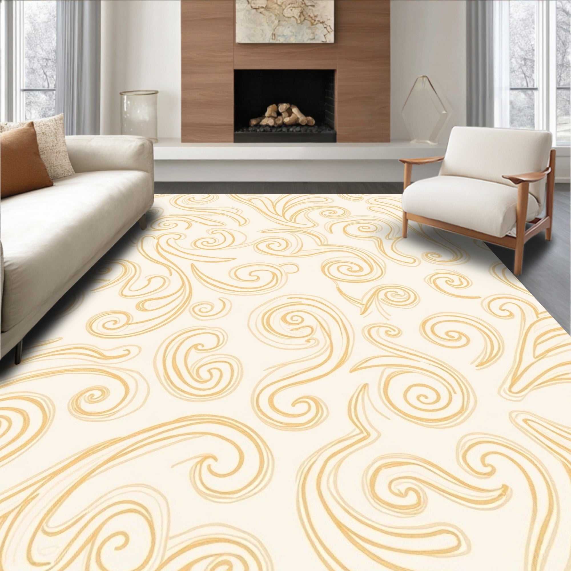 Flatwoven High Traffic Area Rug, Elegant Swirl Cascade Luxury Pile, Non Slip, Stain Resistant, Washable Area Rugs for Living Room, Bedroom (Ivory) Overview: