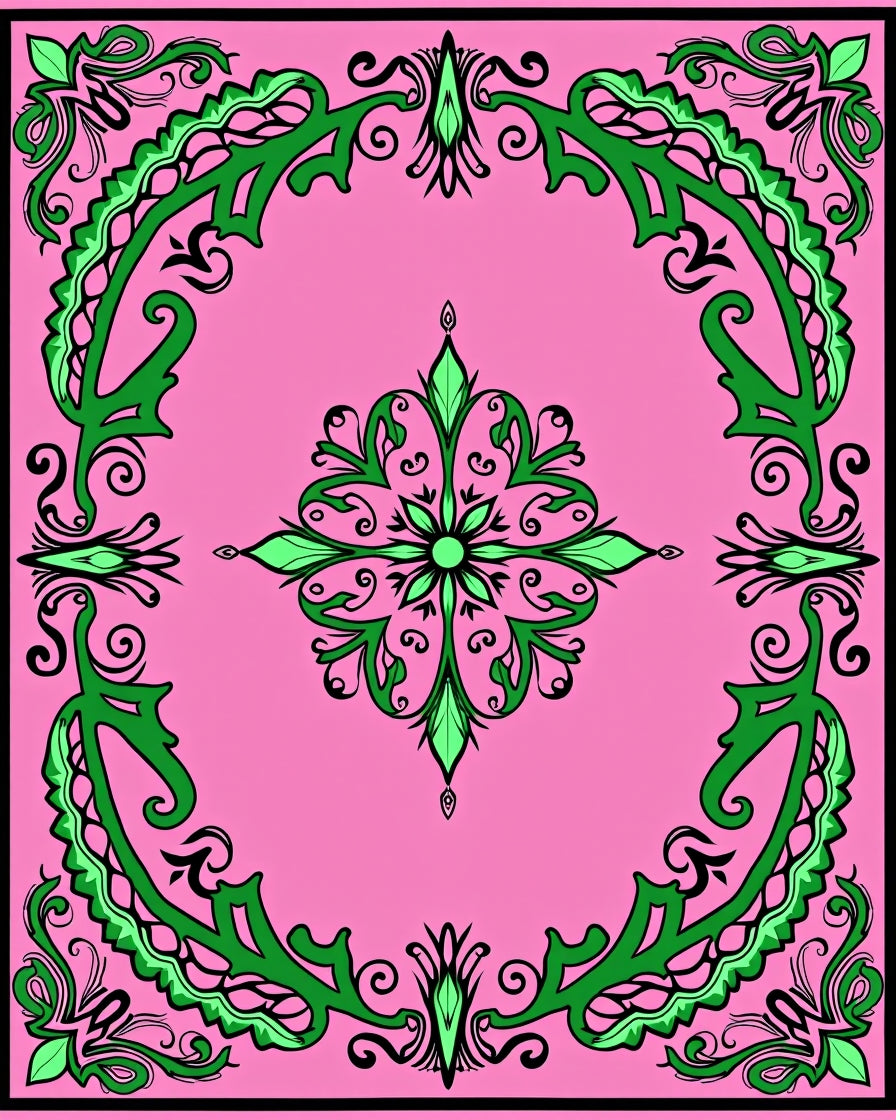 Elegant Swirl Damask Interlocking Scroll Floral Botanical (Pink)