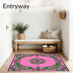 Flatwoven High Traffic Area Rug, Elegant Swirl Damask Interlocking Scroll Floral Botanical, Non Slip, Stain Resistant, Washable Area Rugs for Living Room, Bedroom (Pink) Overview: