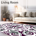 Flatwoven High Traffic Area Rug, Elegant Swirl Damask Medallion Contemporary Sevilla, Non Slip, Stain Resistant, Washable Area Rugs for Living Room, Bedroom (Purple) Overview: