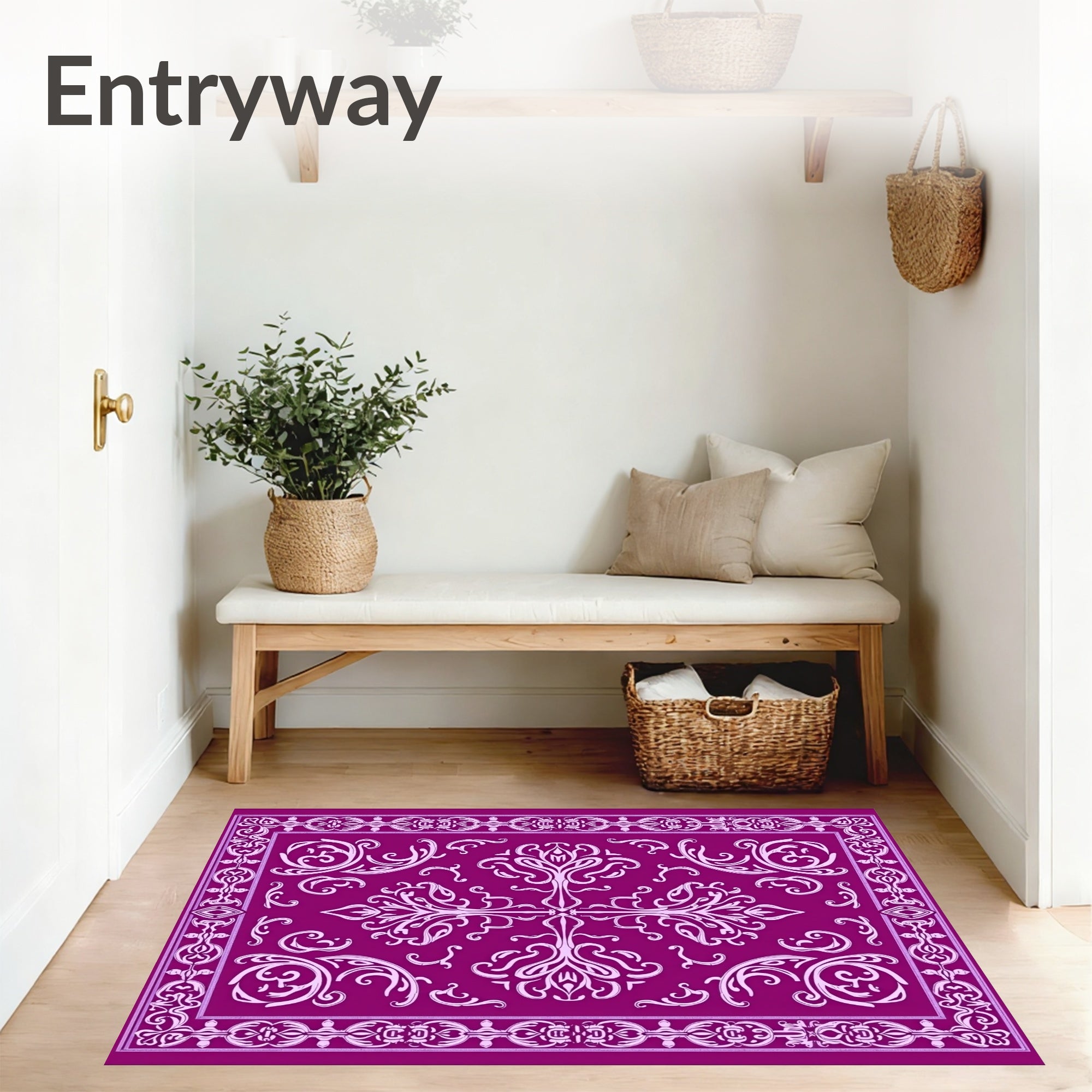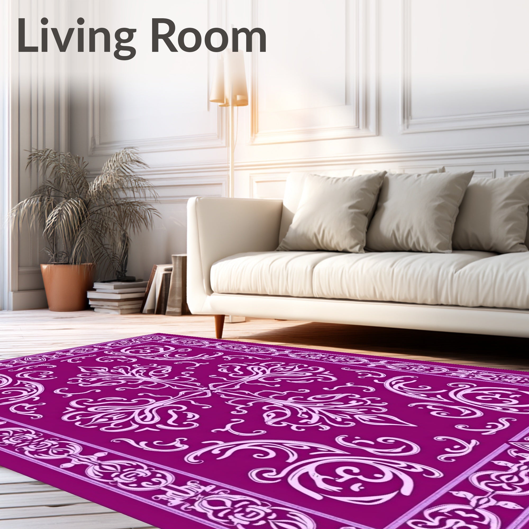 Flatwoven High Traffic Area Rug, Elegant Swirl Damask Vintage Inspired Ornamental Treasure, Non Slip, Stain Resistant, Washable Area Rugs for Living Room, Bedroom (Purple) Overview: