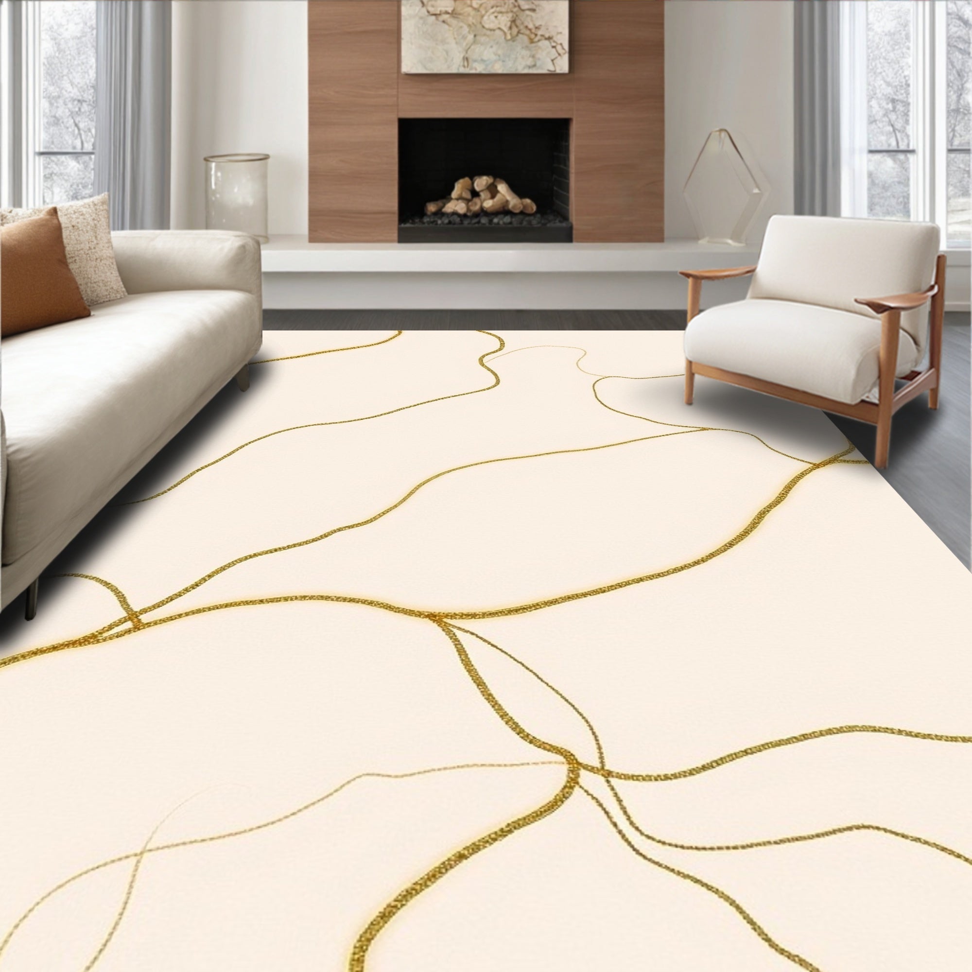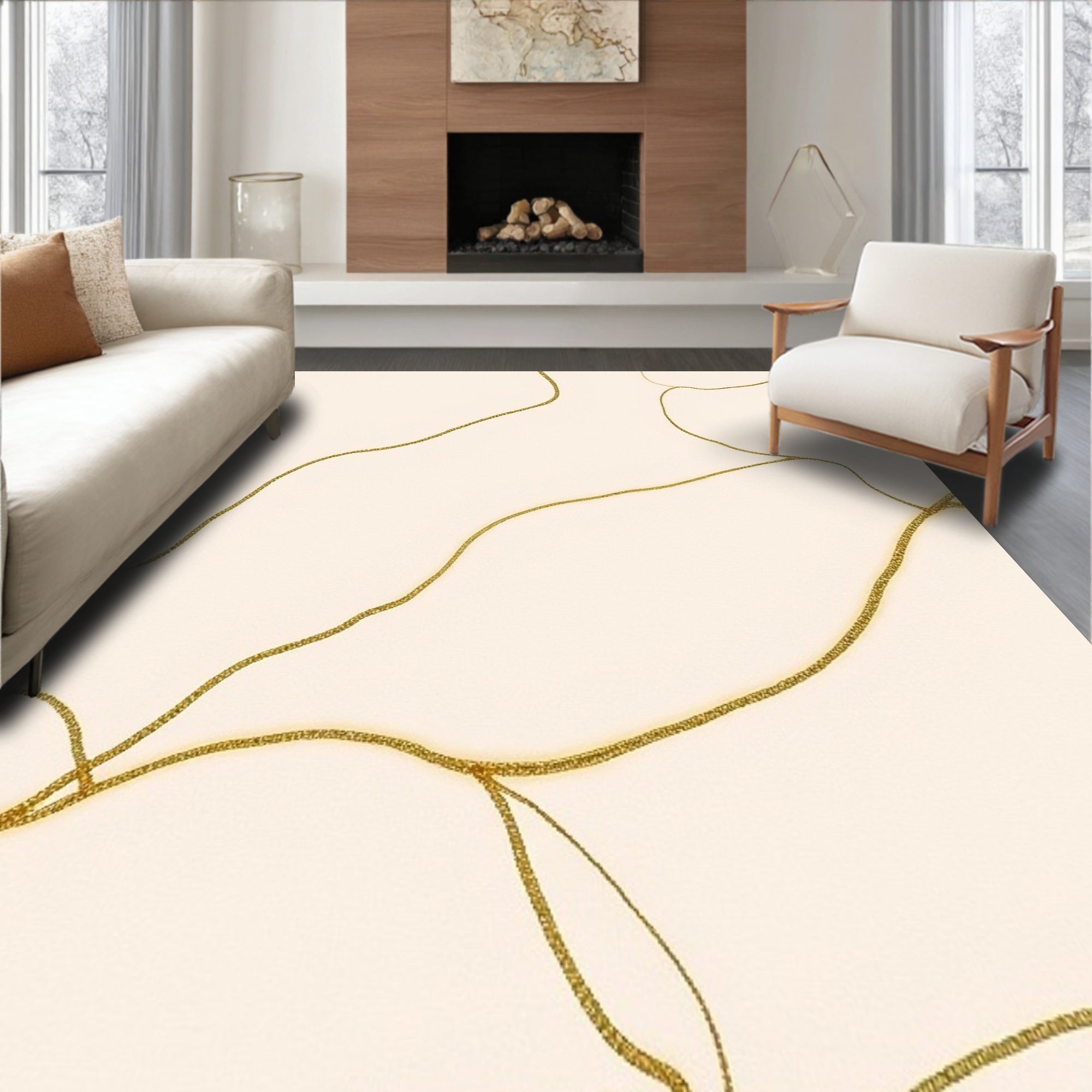 Flatwoven High Traffic Area Rug, Elegant Swirling Marble Veins Luxury Contemporary Accent, Non Slip, Stain Resistant, Washable Area Rugs for Living Room, Bedroom (Ivory) Overview: