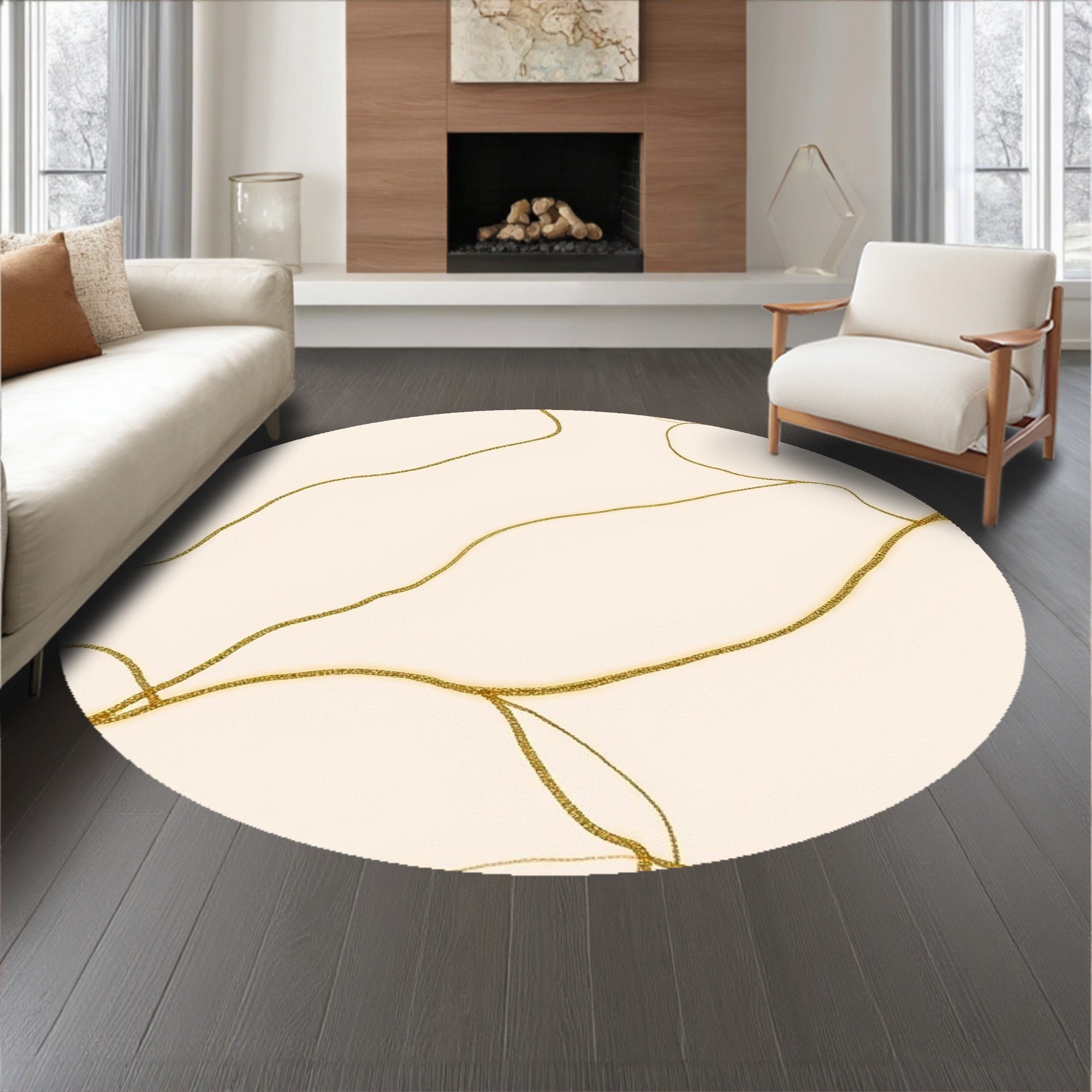 Elegant Swirling Marble Veins Luxury Contemporary Accent (Ivory)