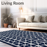 Flatwoven High Traffic Area Rug, Elegant Trellis Interwoven Mesh Lattice Contemporary, Non Slip, Stain Resistant, Washable Area Rugs for Living Room, Bedroom (Blue) Overview: