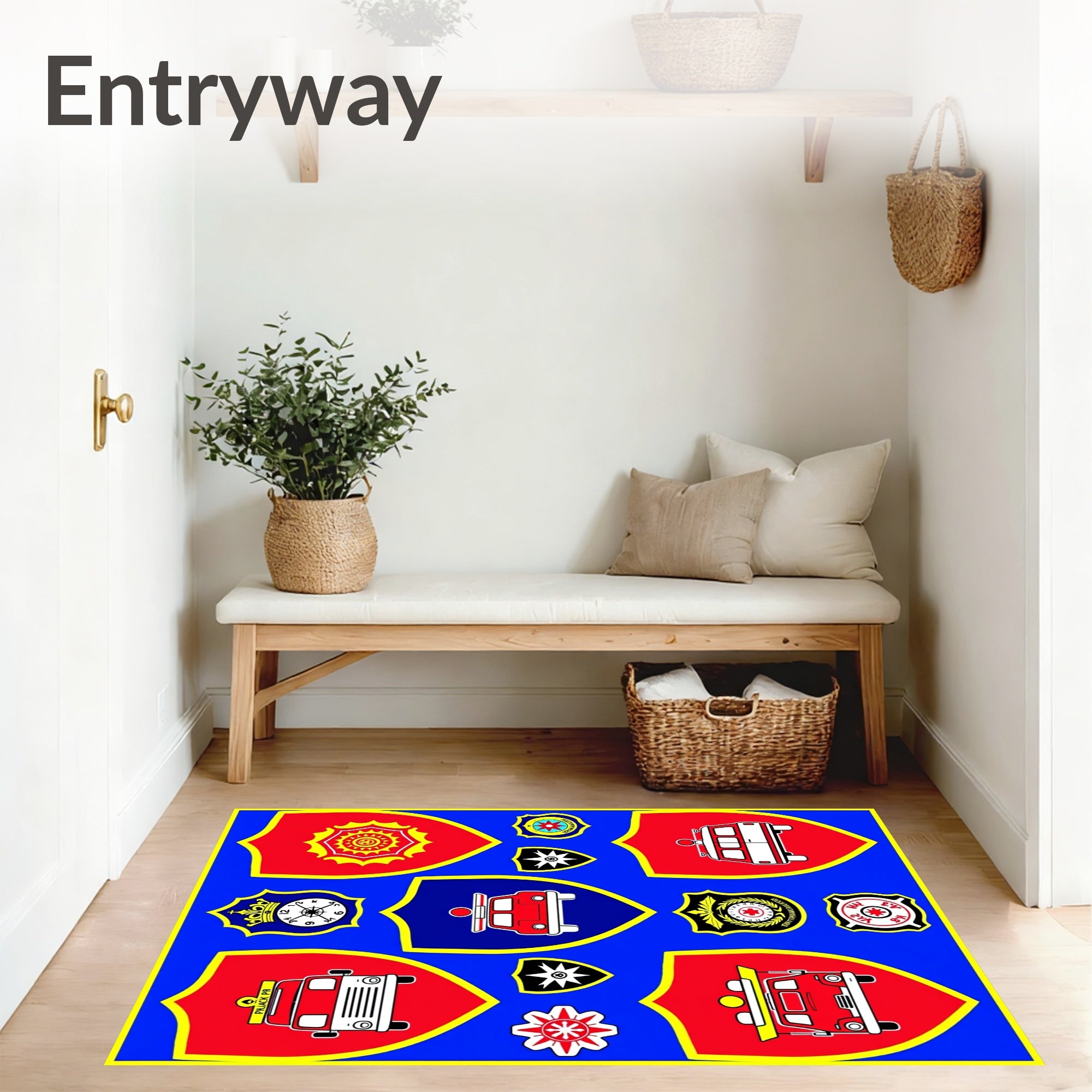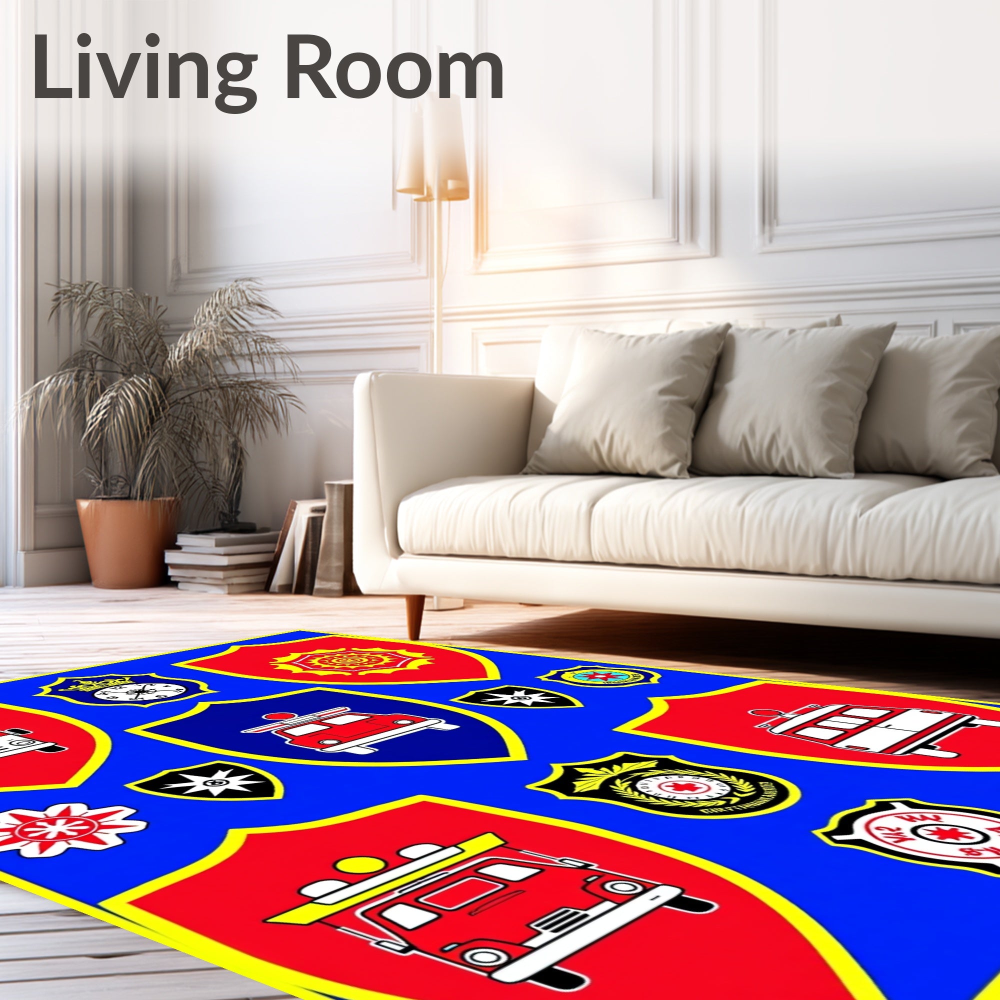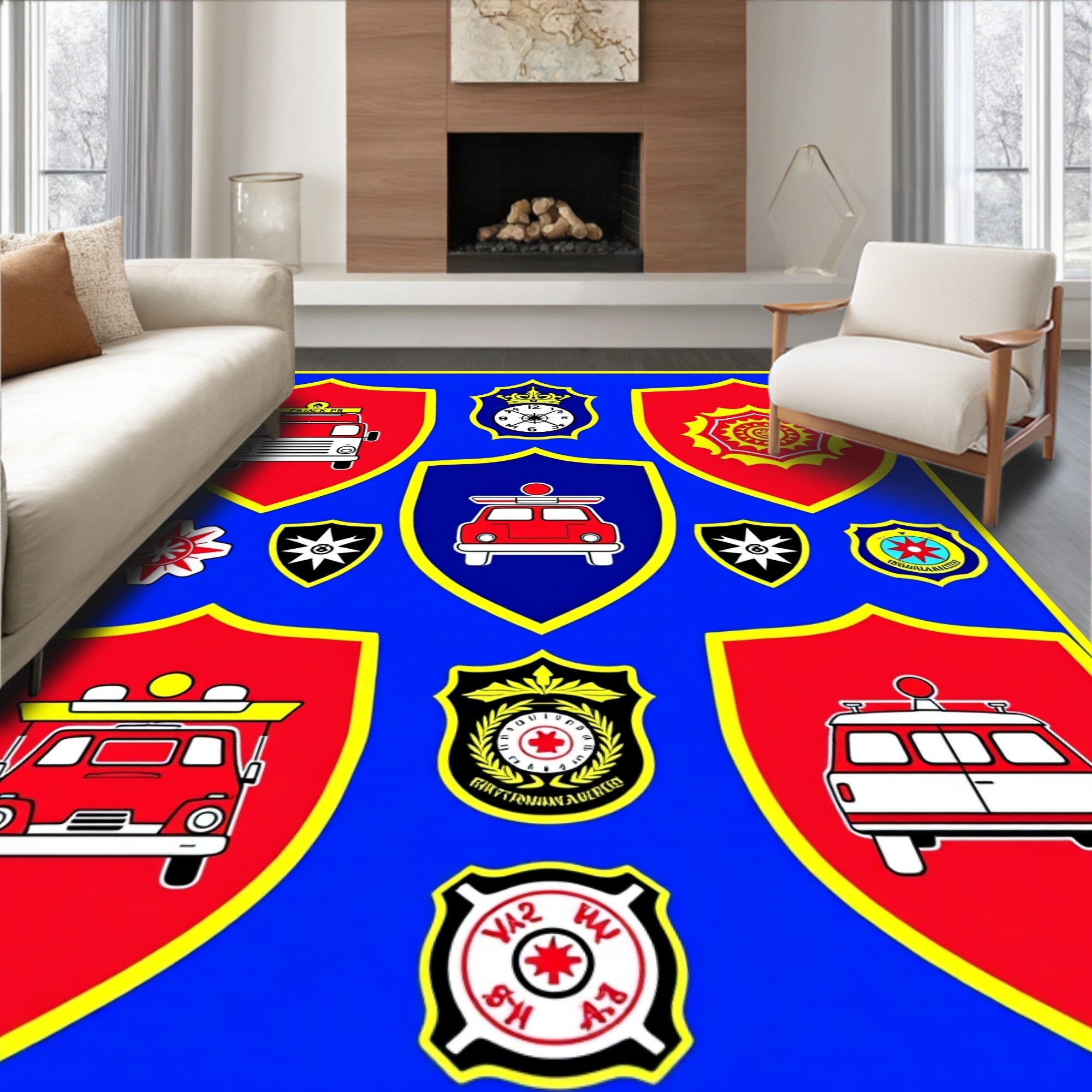 Flatwoven High Traffic Area Rug, Emergency Squad Heroes Badge, Non Slip, Stain Resistant, Washable Area Rugs for Living Room, Bedroom (Blue) Overview: