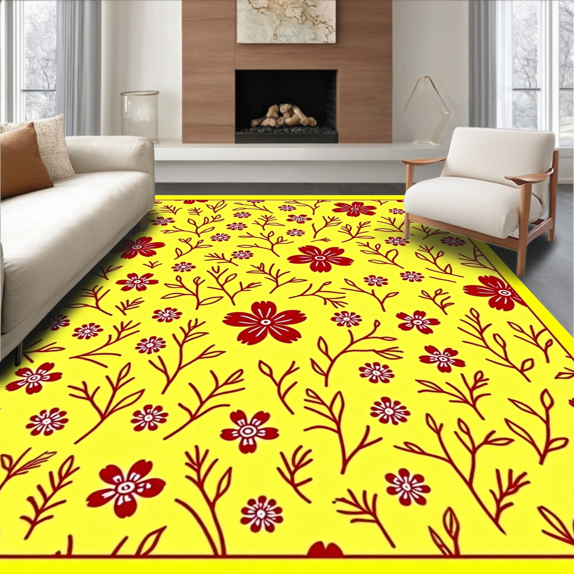 Flatwoven High Traffic Area Rug, Enchanted Blossom Meadow Heavenly Touch, Non Slip, Stain Resistant, Washable Area Rugs for Living Room, Bedroom (Yellow) Overview: