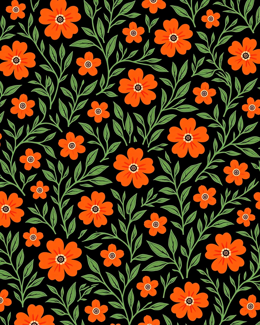 Enchanted Botanical Garden Motif With Delicate Vine Tracery (Orange)