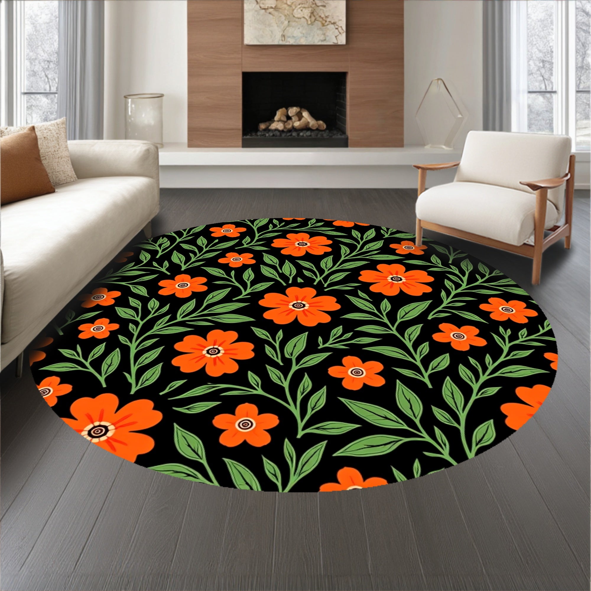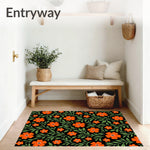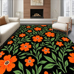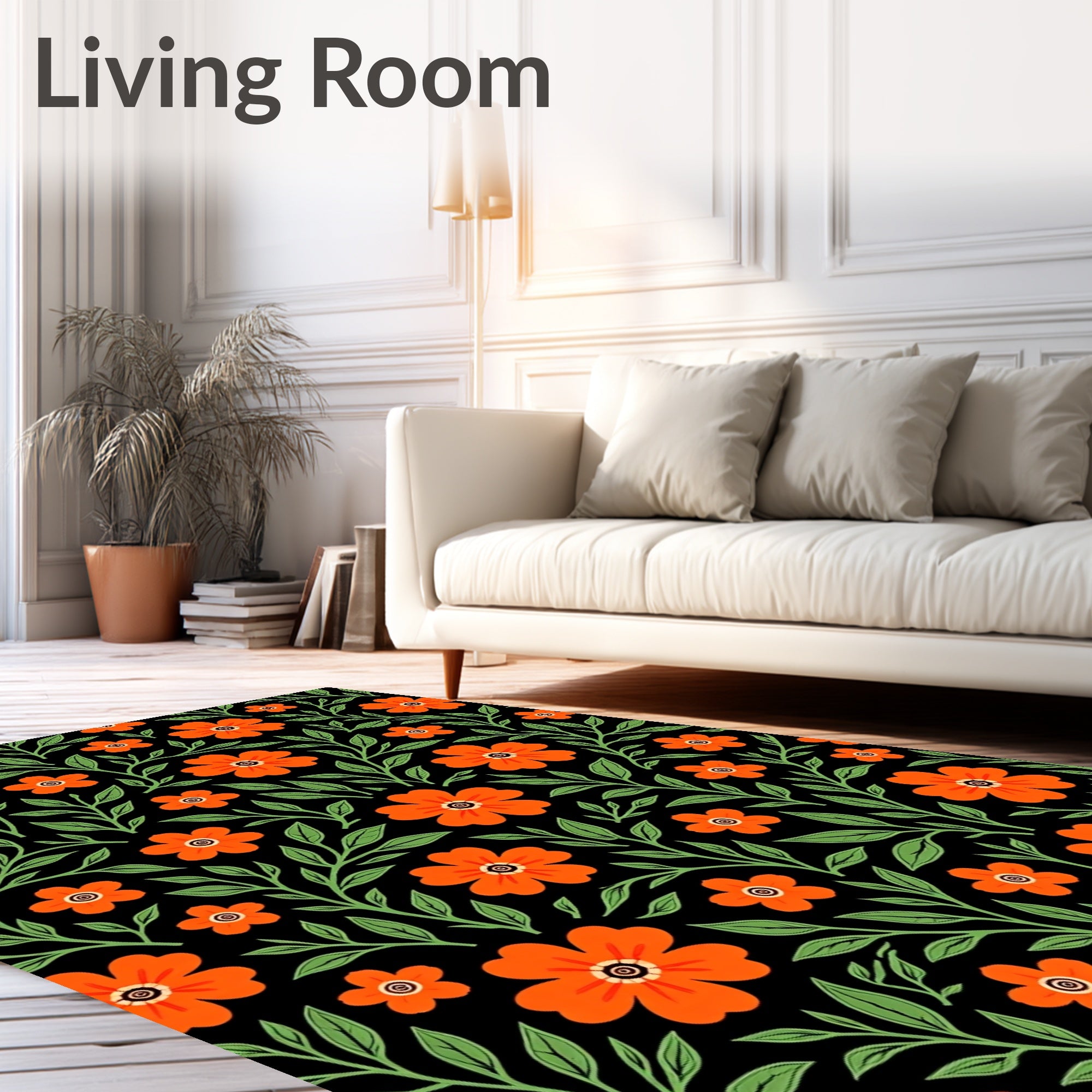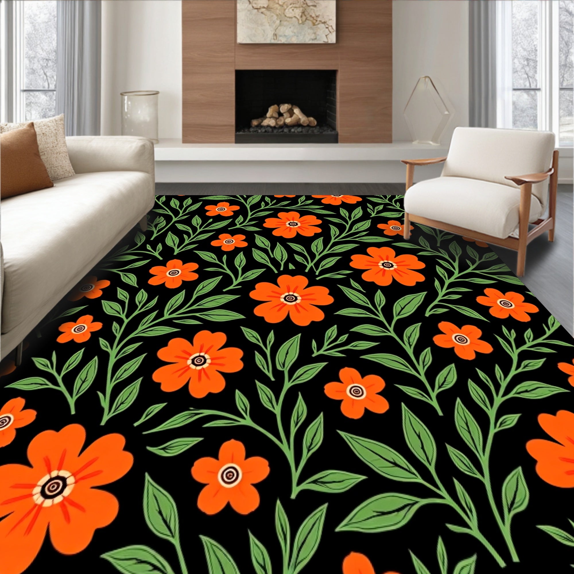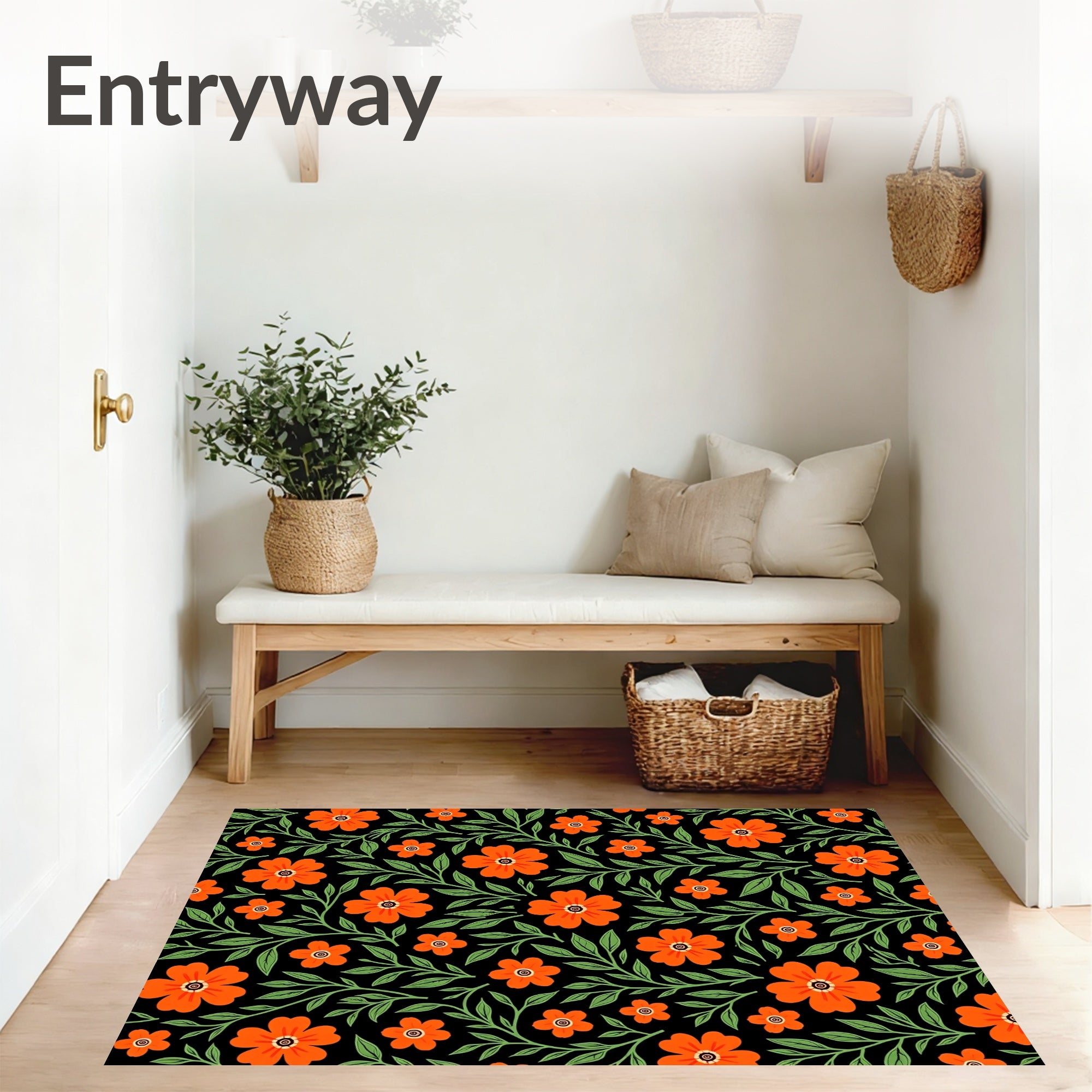 Flatwoven High Traffic Area Rug, Enchanted Botanical Garden Motif With Delicate Vine Tracery, Non Slip, Stain Resistant, Washable Area Rugs for Living Room, Bedroom (Orange) Overview:
