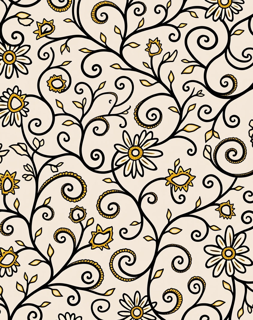 Enchanted Botanical Vine Scrollwork Luxurious Decorative Embellished (Beige)