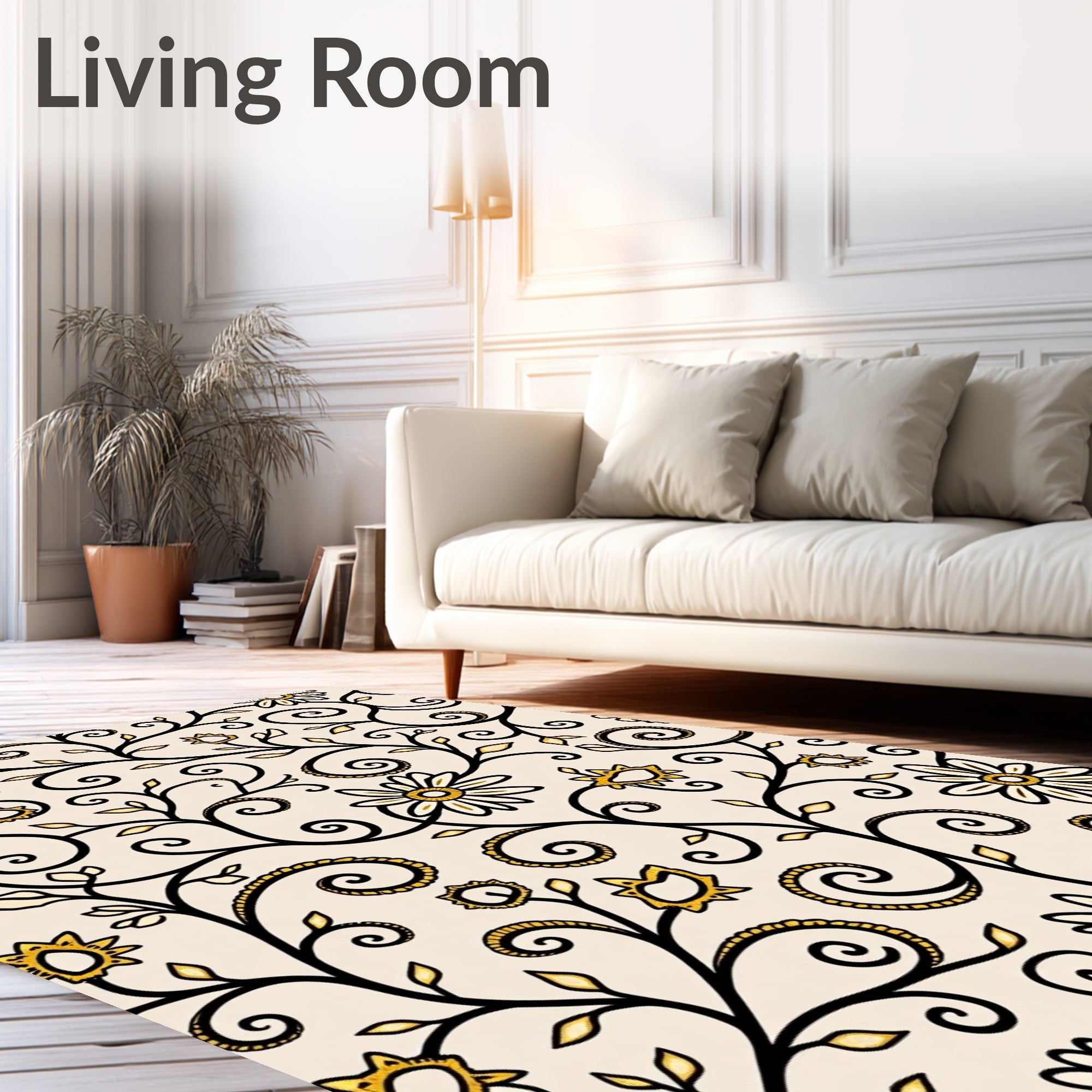 Flatwoven High Traffic Area Rug, Enchanted Botanical Vine Scrollwork Luxurious Decorative Embellished, Non Slip, Stain Resistant, Washable Area Rugs for Living Room, Bedroom (Beige) Overview: