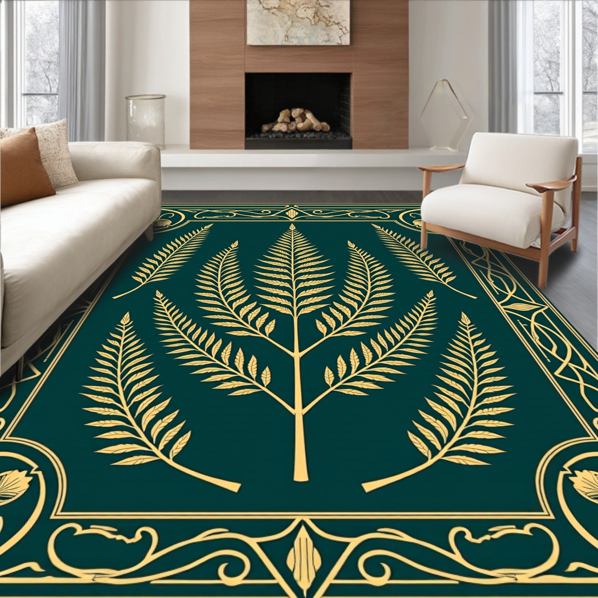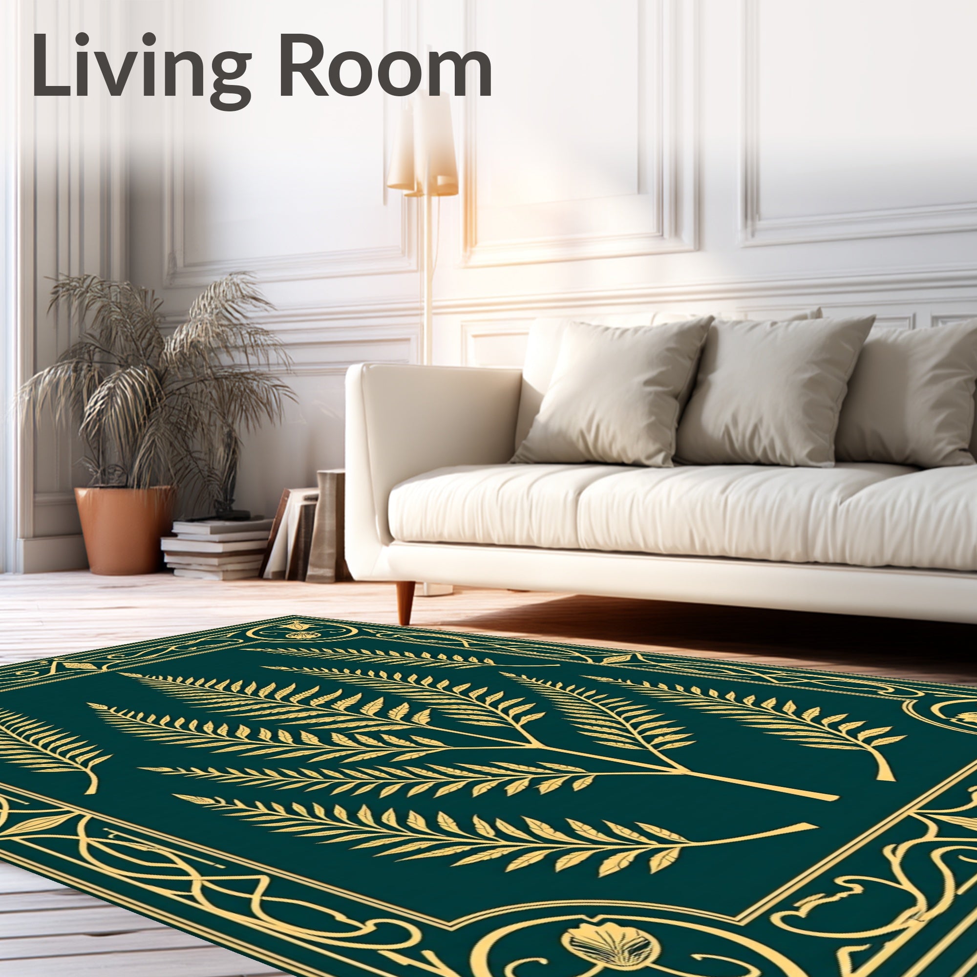 Flatwoven High Traffic Area Rug, Enchanted Fern Labyrinth Treasure, Non Slip, Stain Resistant, Washable Area Rugs for Living Room, Bedroom (Gold) Overview: