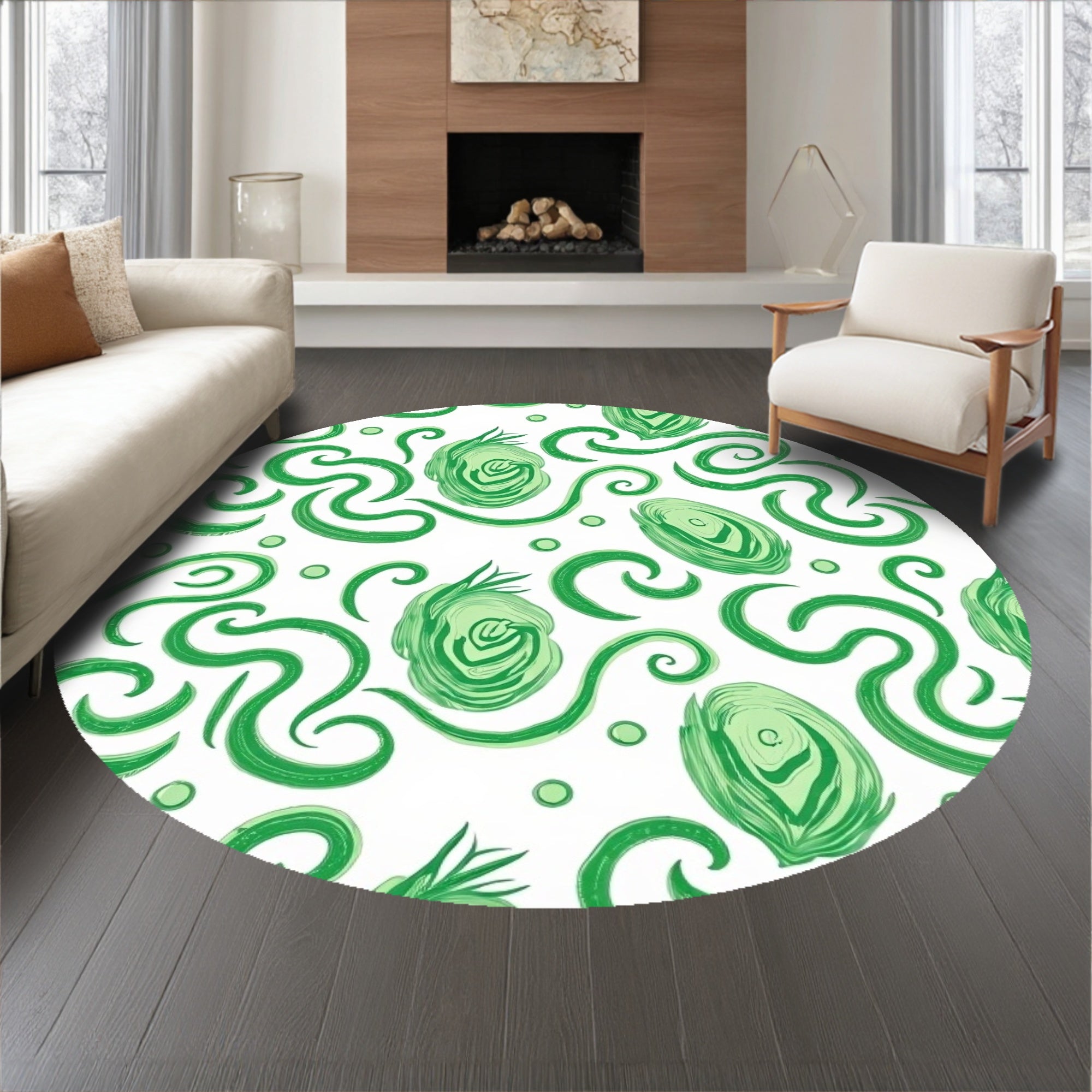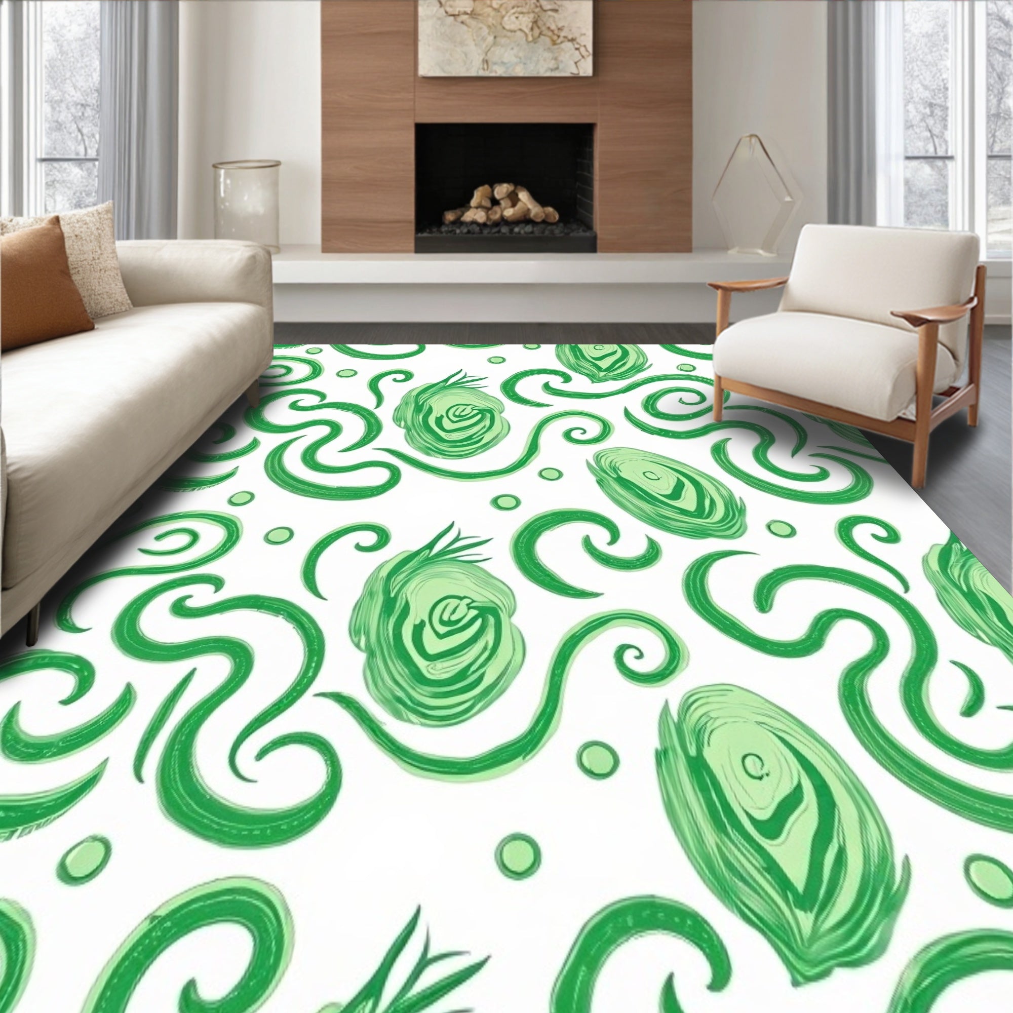 Flatwoven High Traffic Area Rug, Enchanted Forest Mystical Spiral Botanical Whimsical Wonderland, Non Slip, Stain Resistant, Washable Area Rugs for Living Room, Bedroom (Green) Overview: