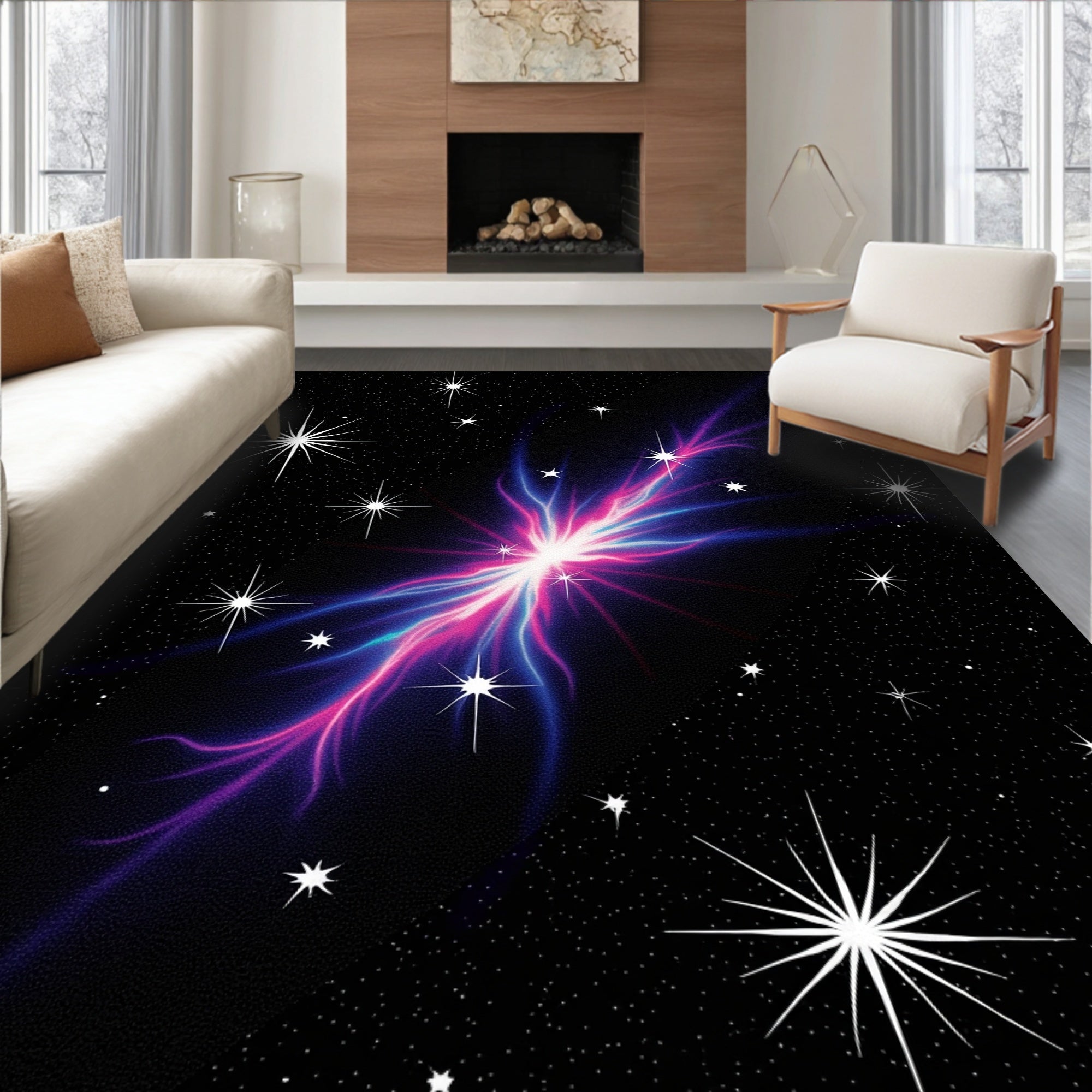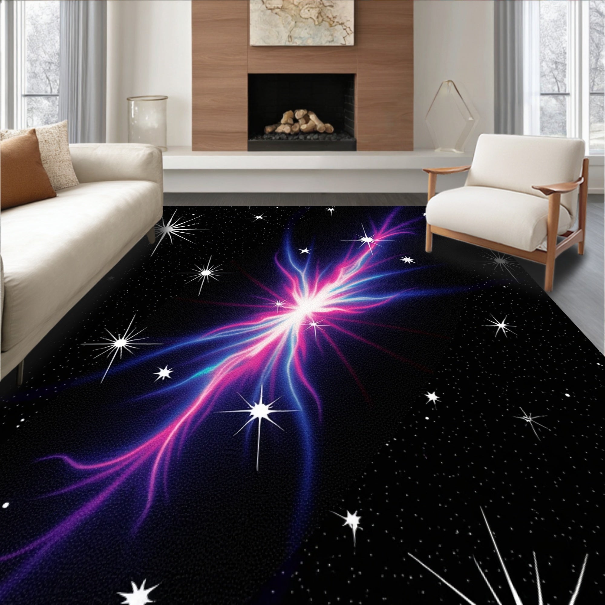 Flatwoven High Traffic Area Rug, Enchanted Galaxy Plush Sparkling Twinkle Radiant Shimmer, Non Slip, Stain Resistant, Washable Area Rugs for Living Room, Bedroom (Black) Overview: